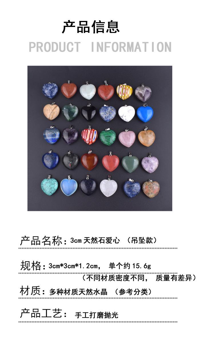 Collar de Cristal con Forma de Corazón de Piedra Natural de Venta Caliente Transfronteriza 30 mm Collar de Corazón Colgante Llavero Colgante Accesorio