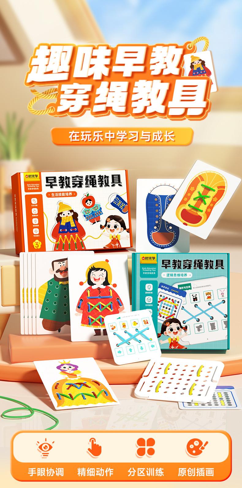 Early education rope threading teaching aids life skills + logical thinking, Early education rope threading te...