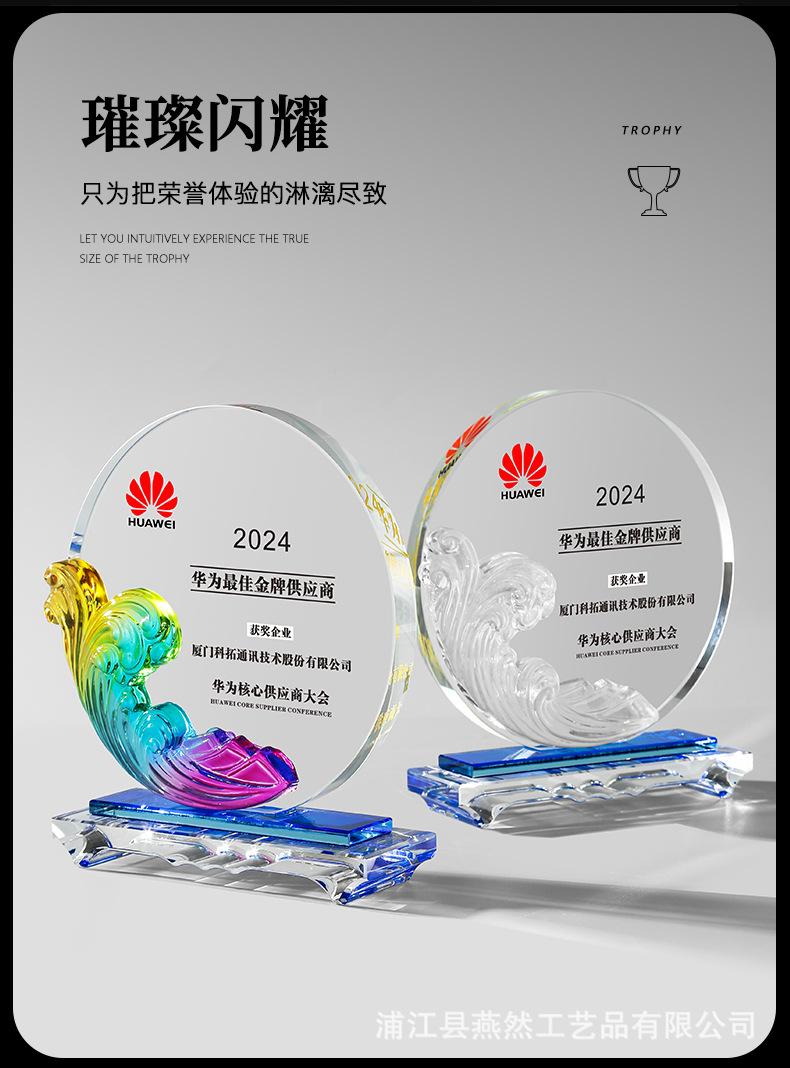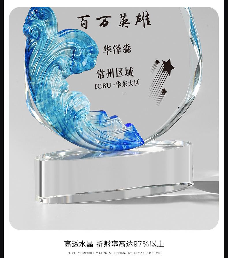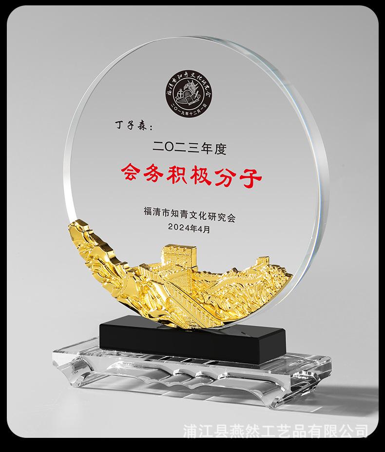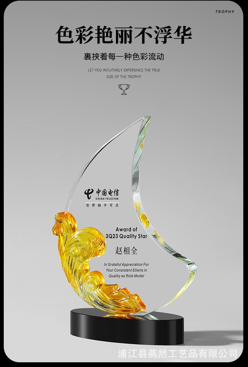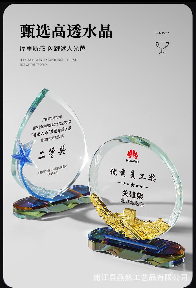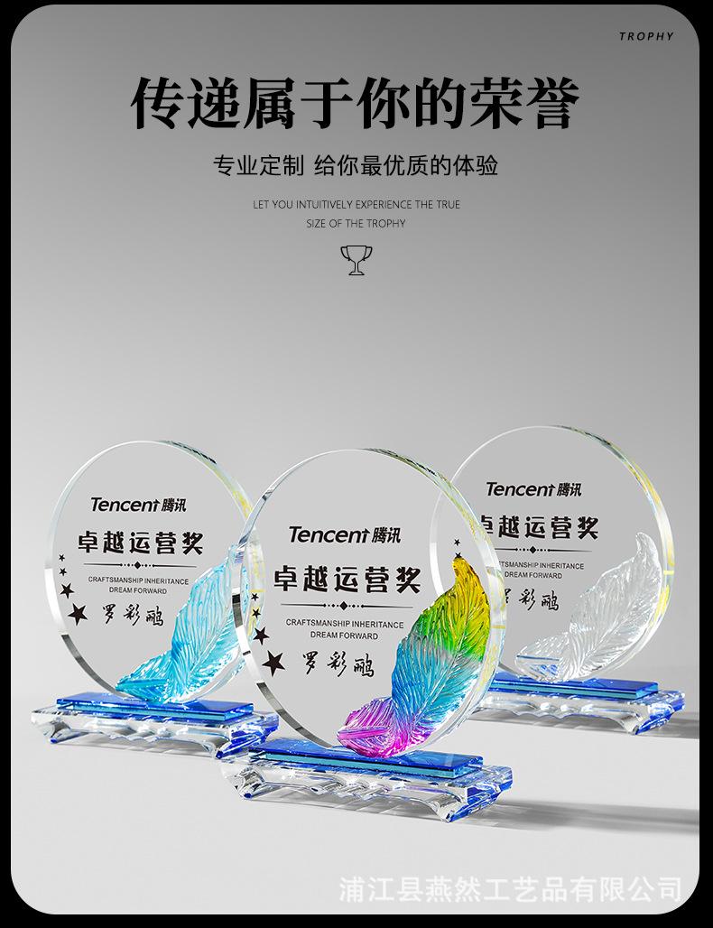 Nuevo Color Trofeo de Cristal Empleado Destacado Compañía de Seguros Premios Reunión Anual Medalla Creativa Impresión a Color Haciendo Souvenirs
