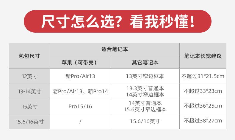 11 inch, 12 inches, 13 inches, 14 inch, 15 inch, 15.6 inches