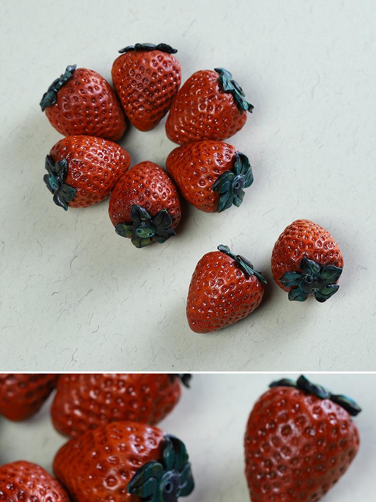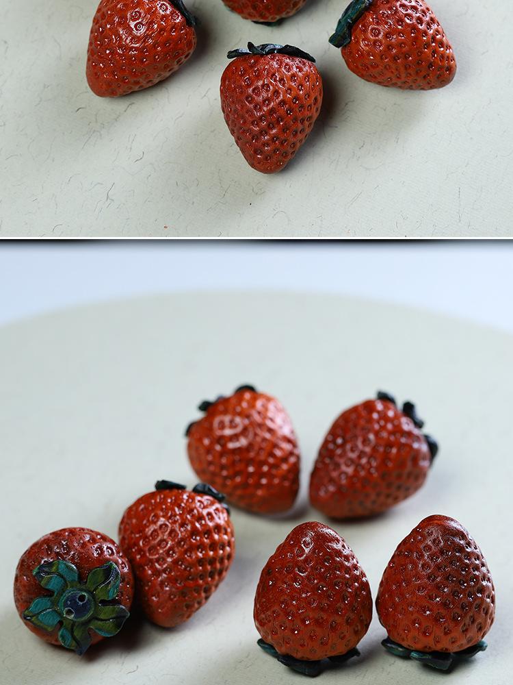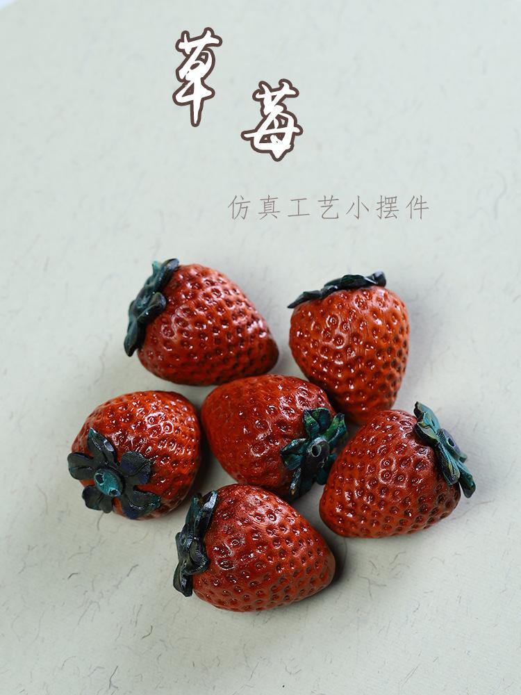 Adornos pequeños de fresa tallada en palisandro, simulación de fruta, mesa de té de oficina, manualidades creativas, decoración