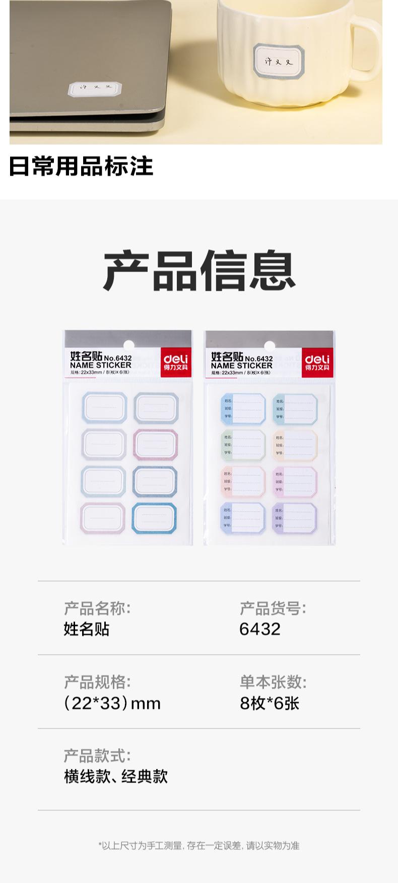 Pegatina con nombre Deli 6432, pegatina con nombre creativa, etiqueta autoadhesiva manuscrita, pegatina autoadhesiva grande