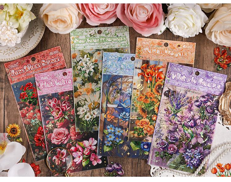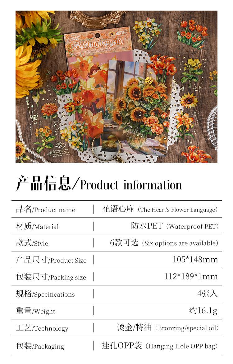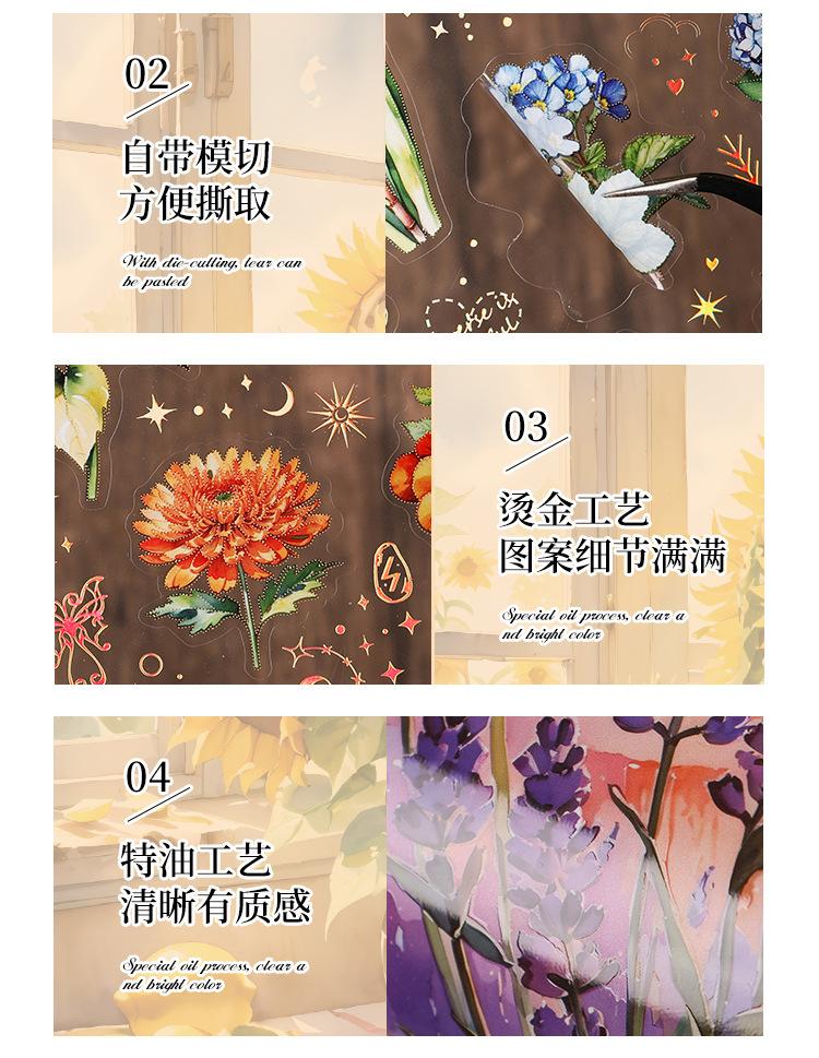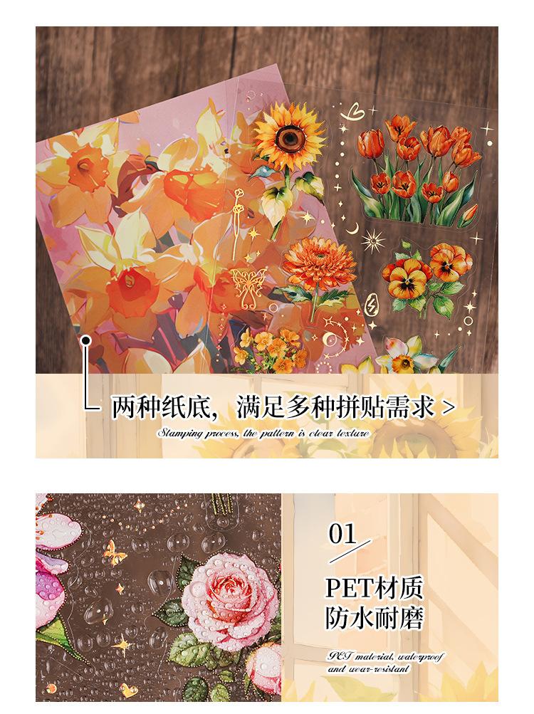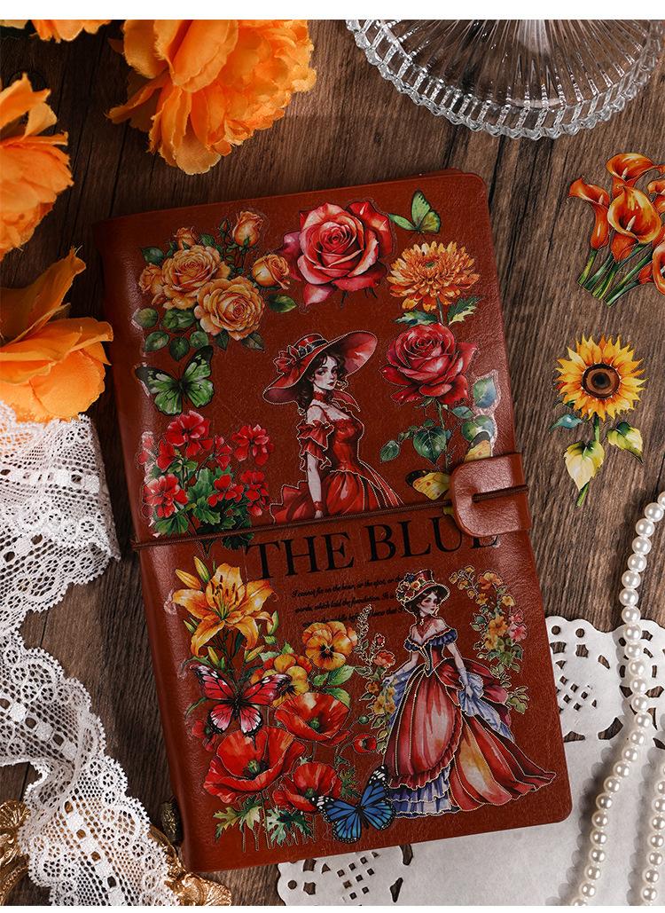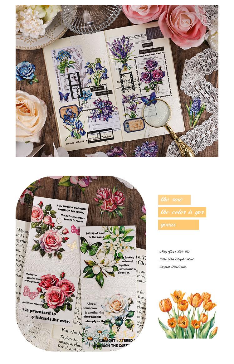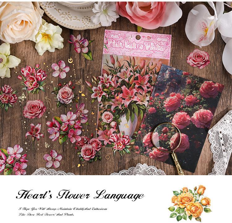 Pegatinas transparentes e impermeables con forma de corazón de flores para mascotas, pegatinas para diario, pegatinas transfronterizas con diseño retro de plantas y flores bronceadas.