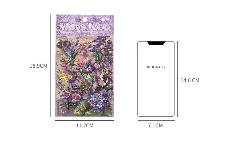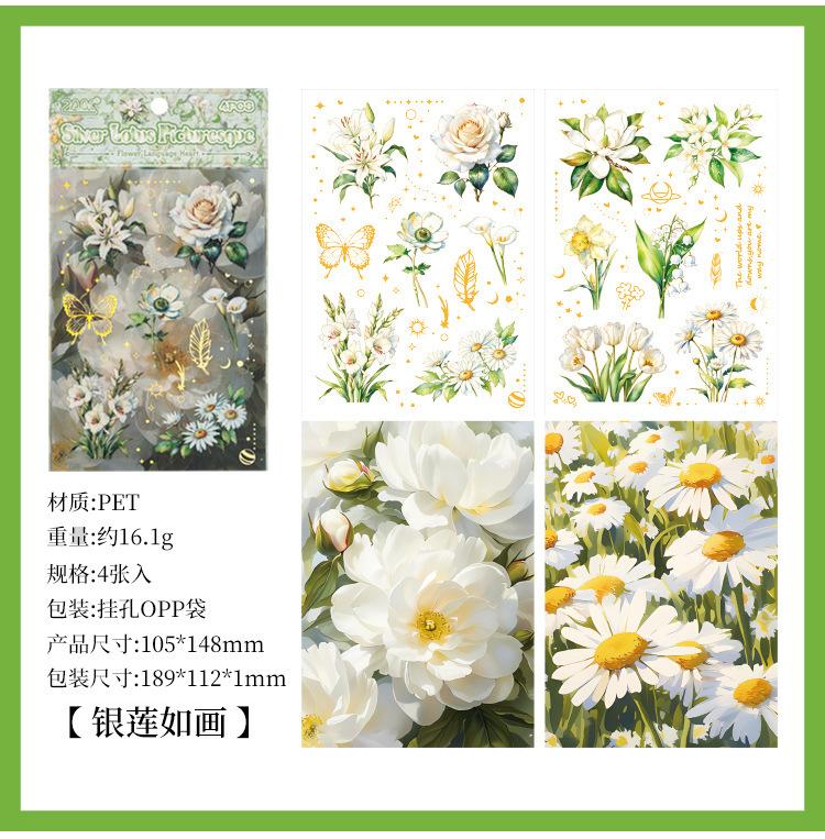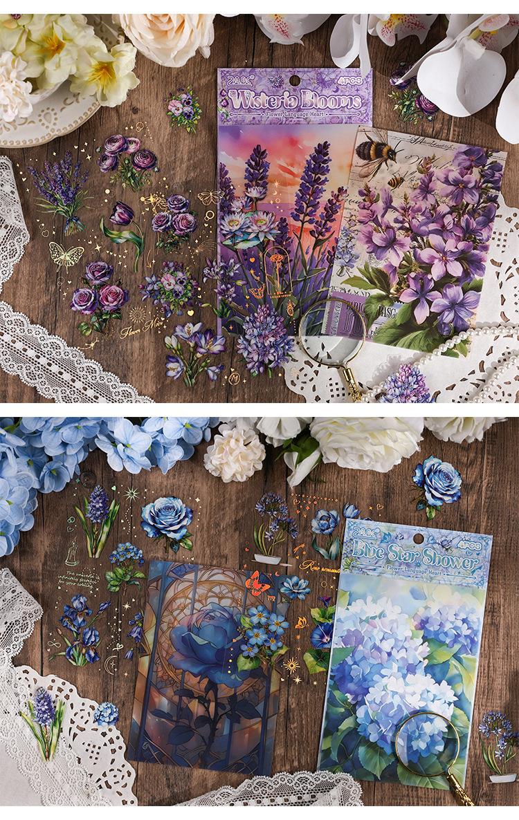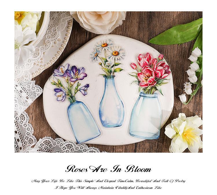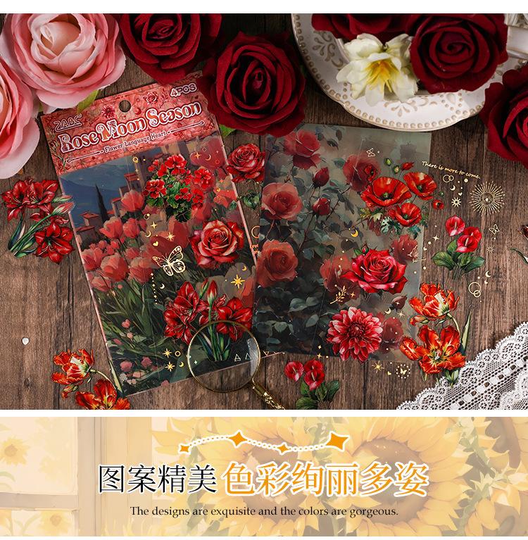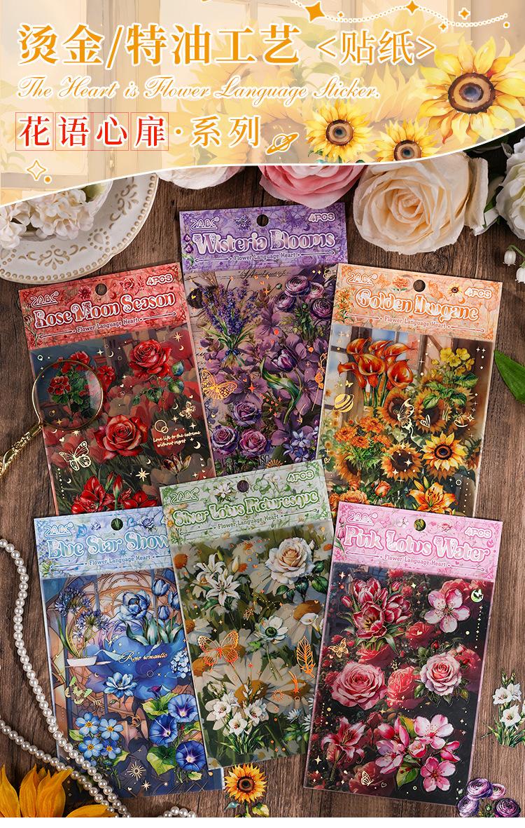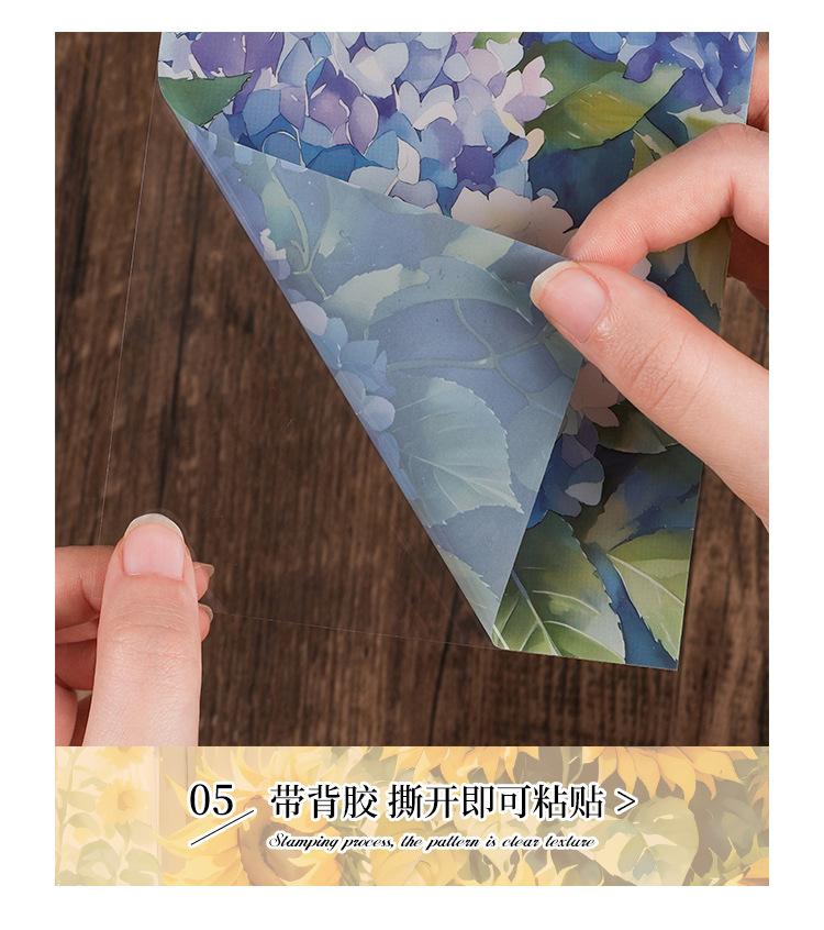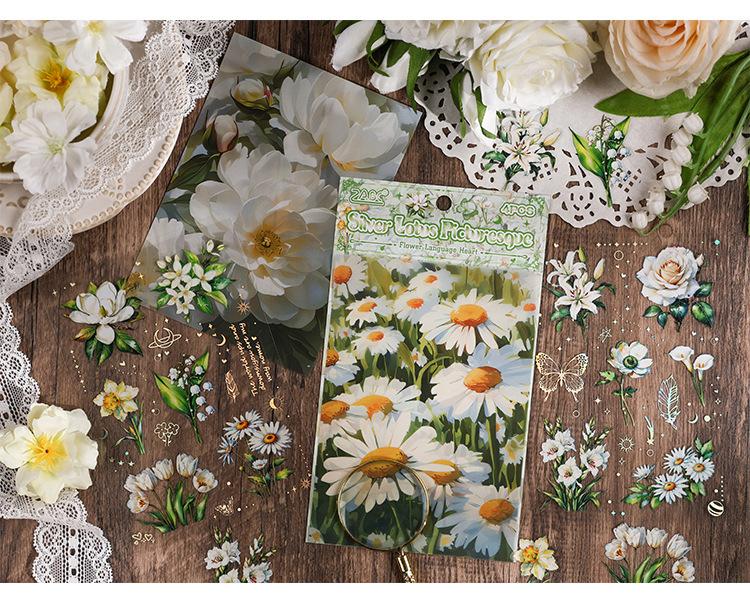 Pegatinas transparentes e impermeables con forma de corazón de flores para mascotas, pegatinas para diario, pegatinas transfronterizas con diseño retro de plantas y flores bronceadas.