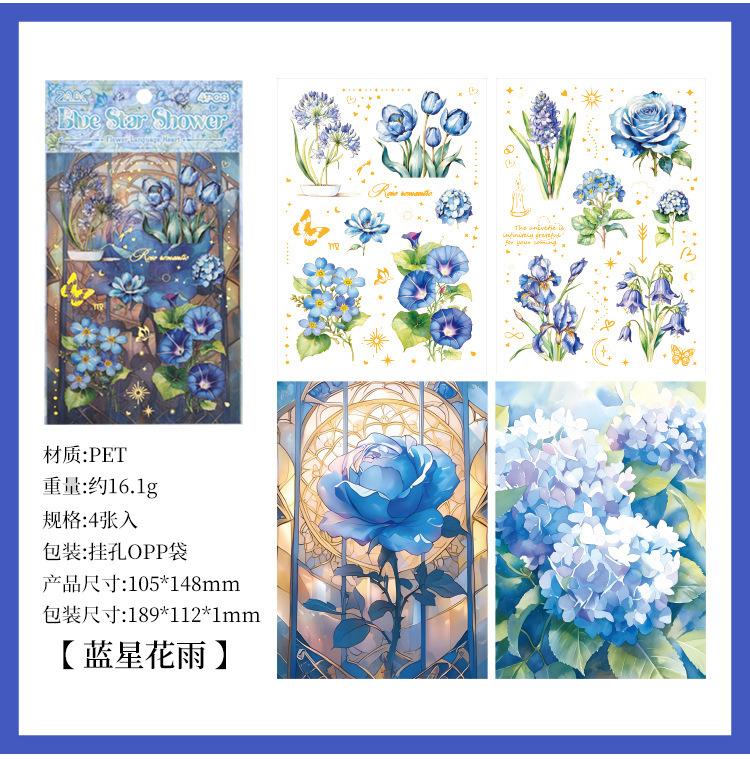 3 blue star flower rain