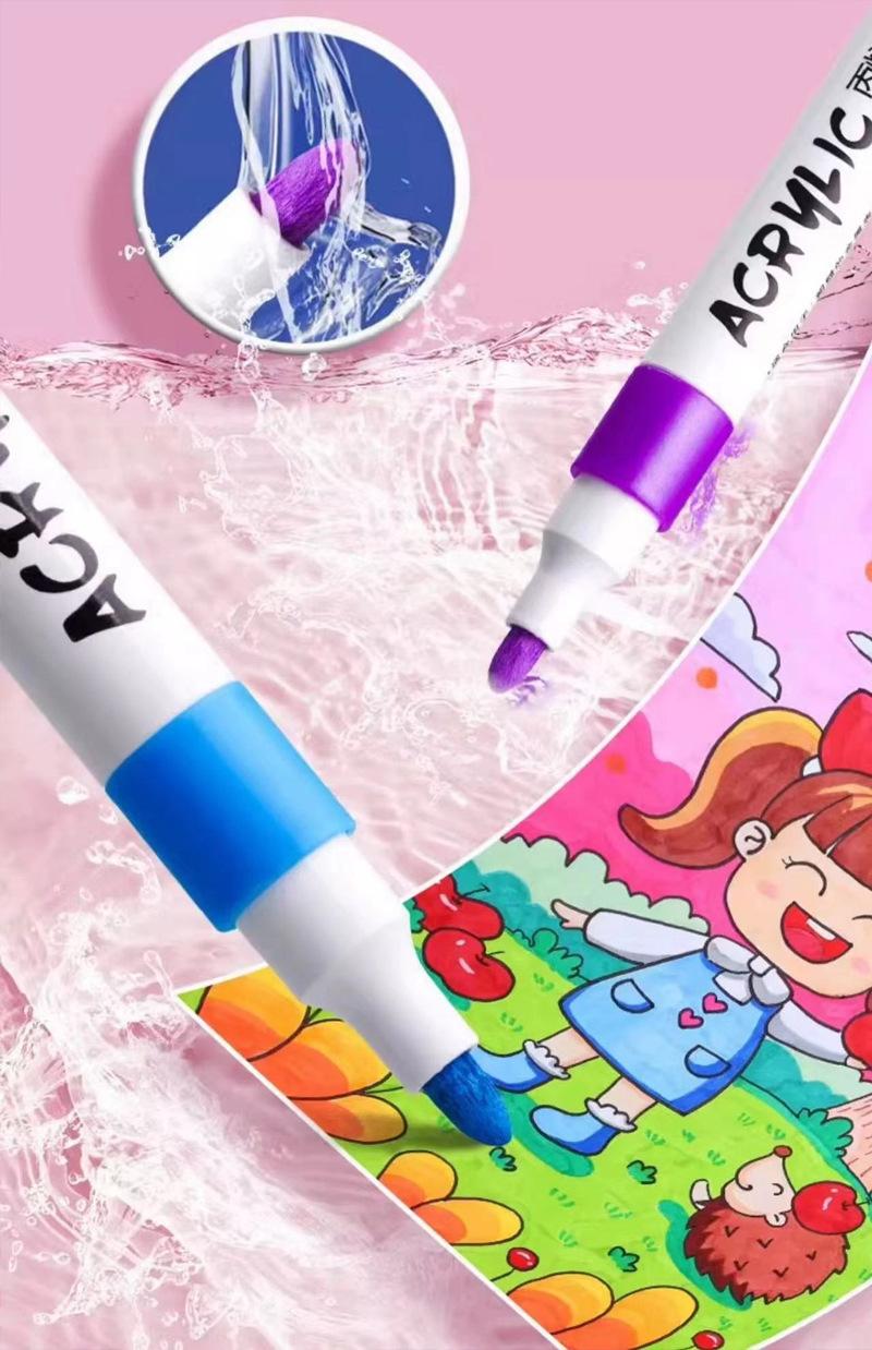 Plumón Acrílico para Niños en Bolsa de Tela, No Tóxico, Lavable, Plumón Especial para Arte Estudiantil de Acuarela, Opaco y Apilable