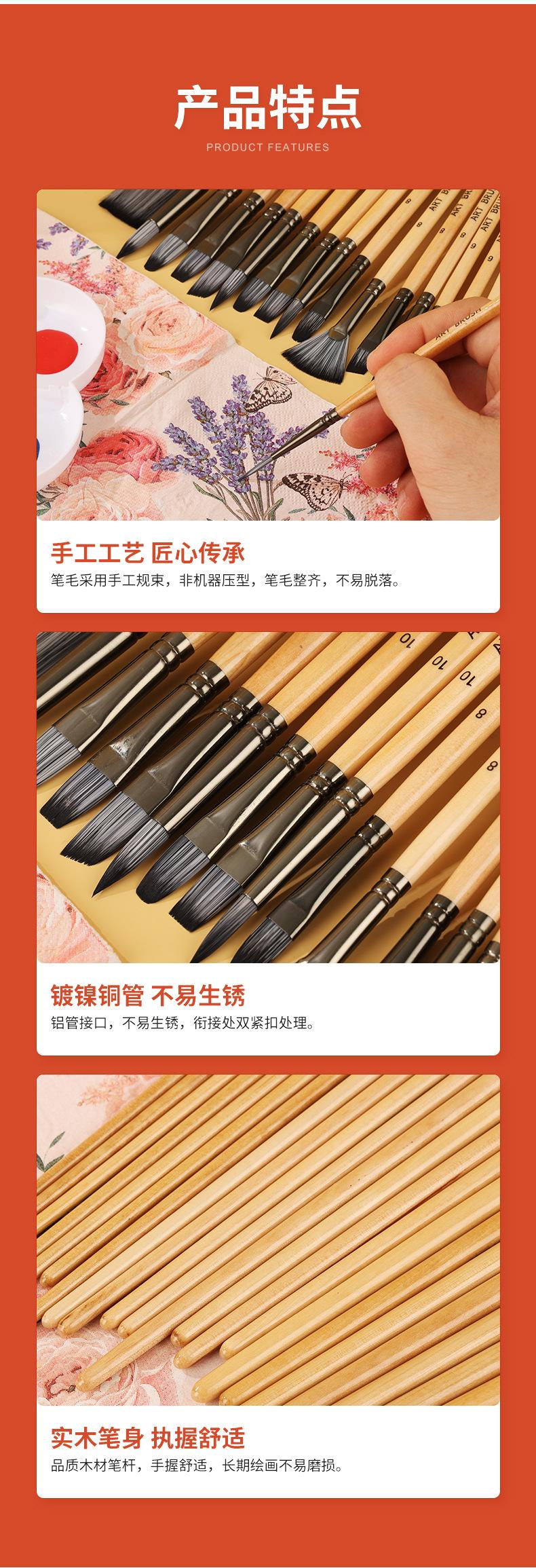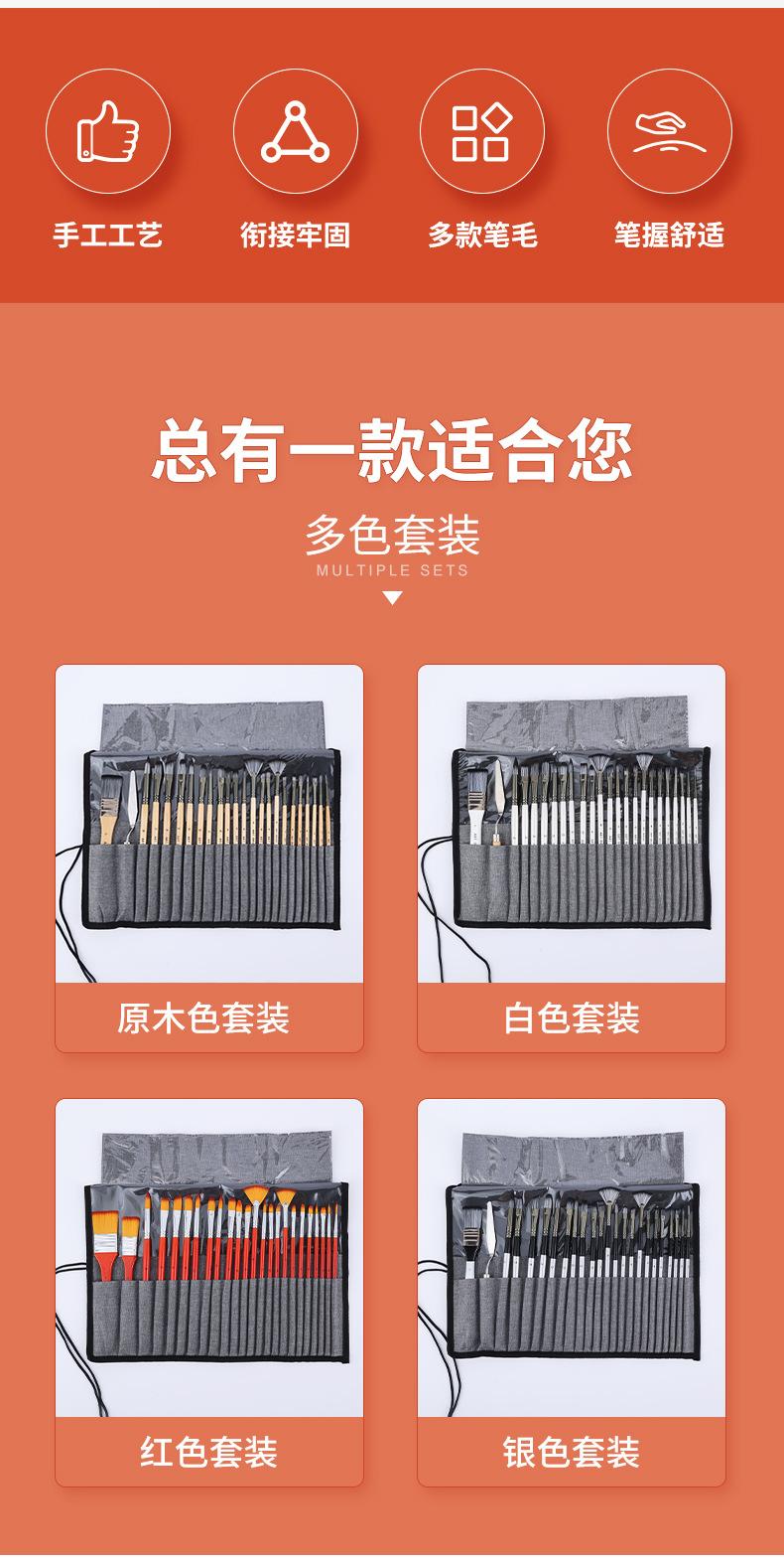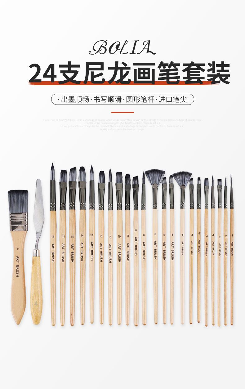 Juego de 24 pinceles de pintura acrílica gouache transfronterizos, pinceles de lana de nailon, pinceles en forma de abanico para pintura al óleo, venta al por mayor