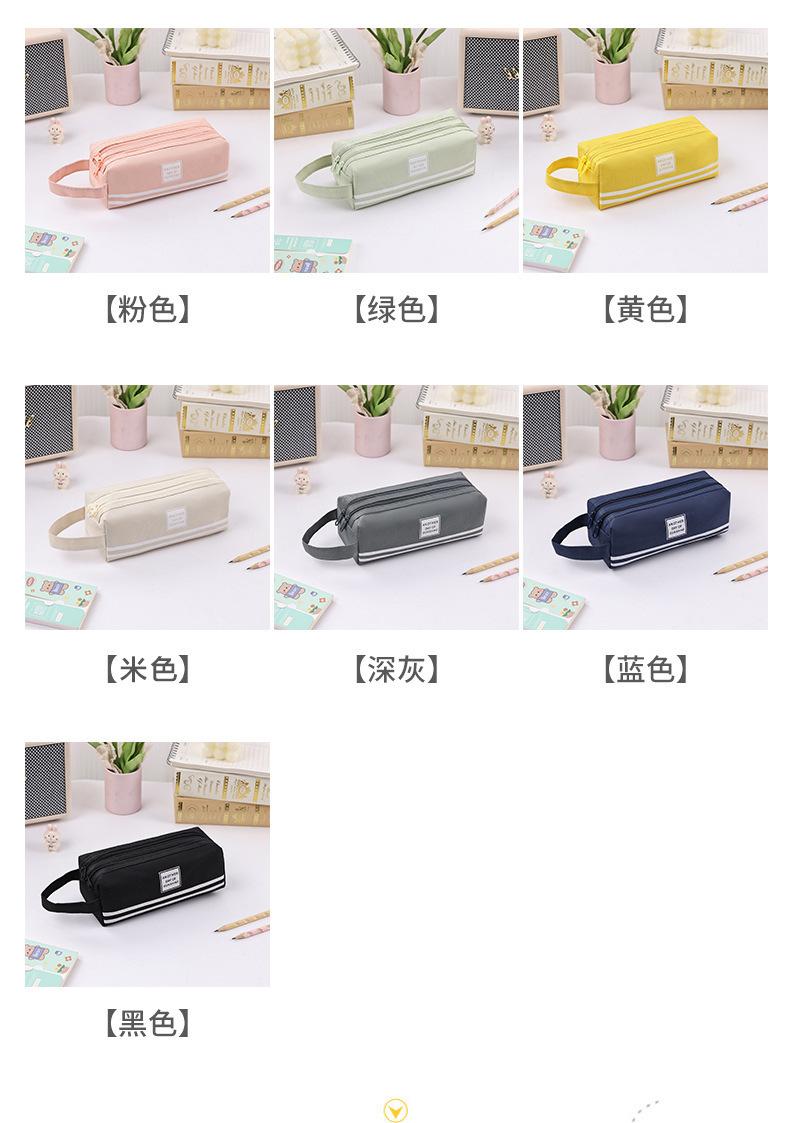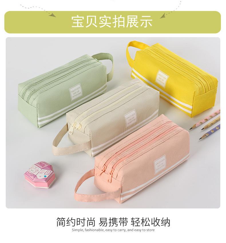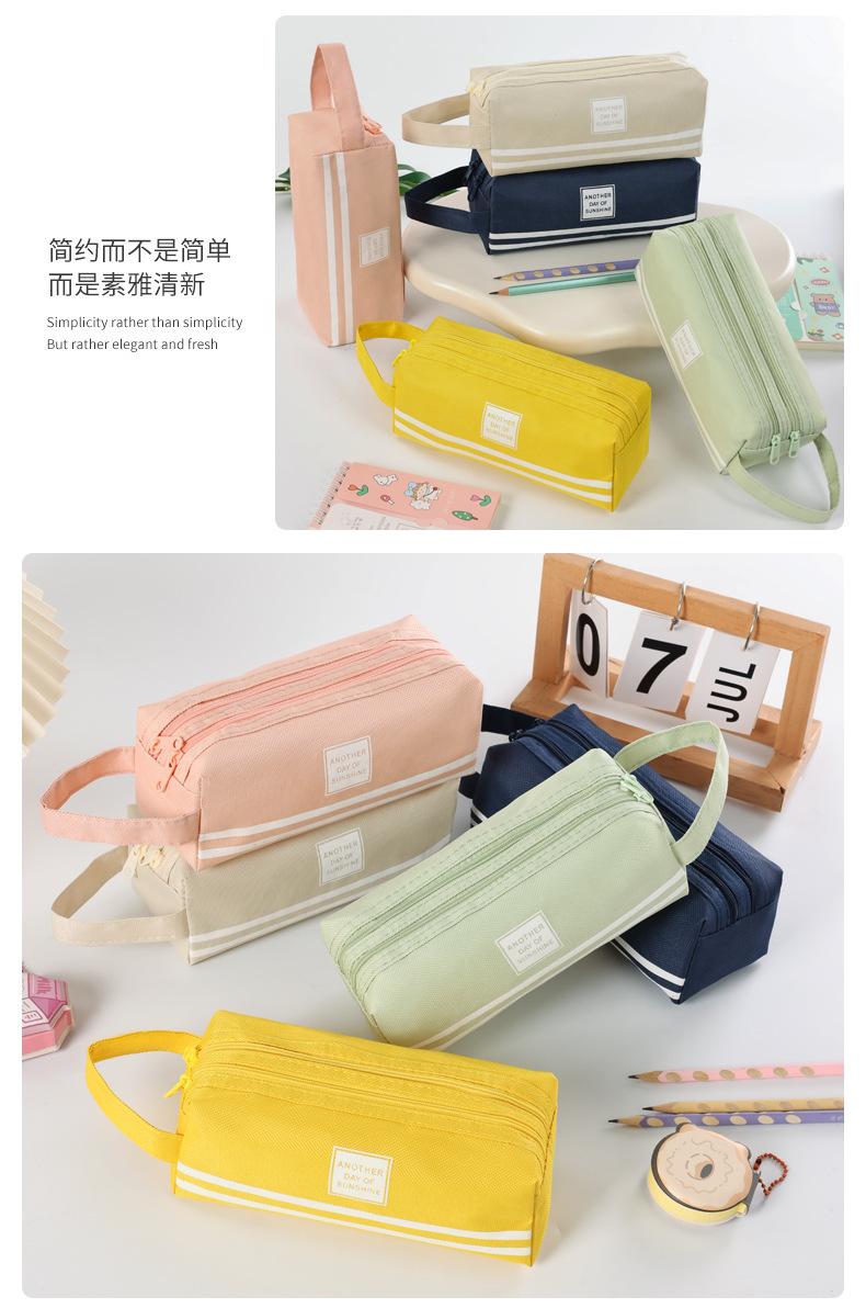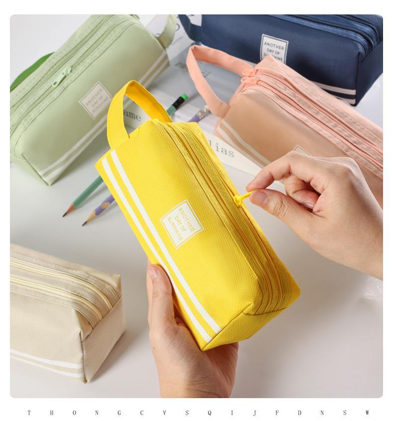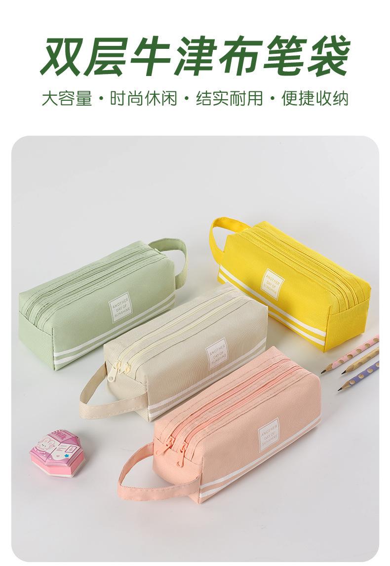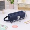 Estuche de tela Oxford de doble capa, estilo coreano, sencillo, de gran capacidad, con doble tirador, para estudiantes de primaria, portátil, con cremallera, para papelería