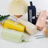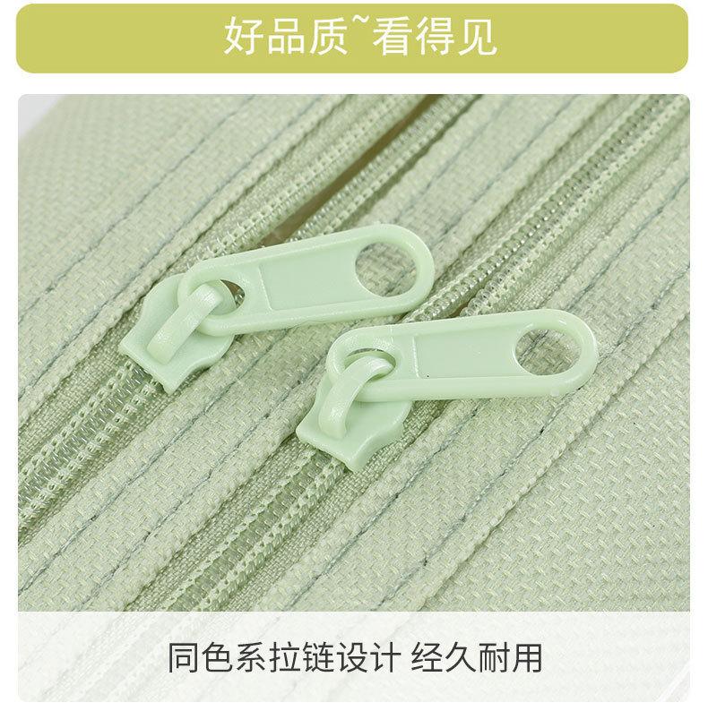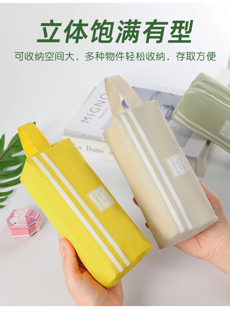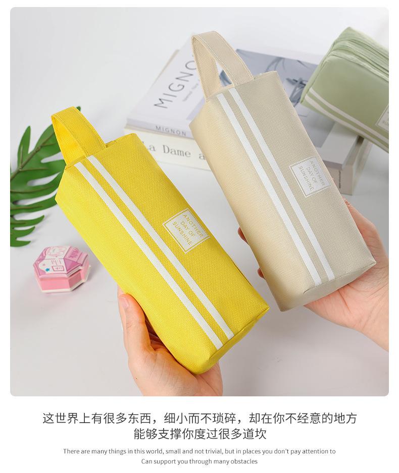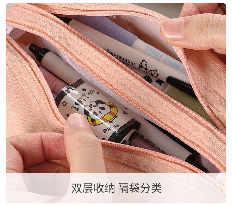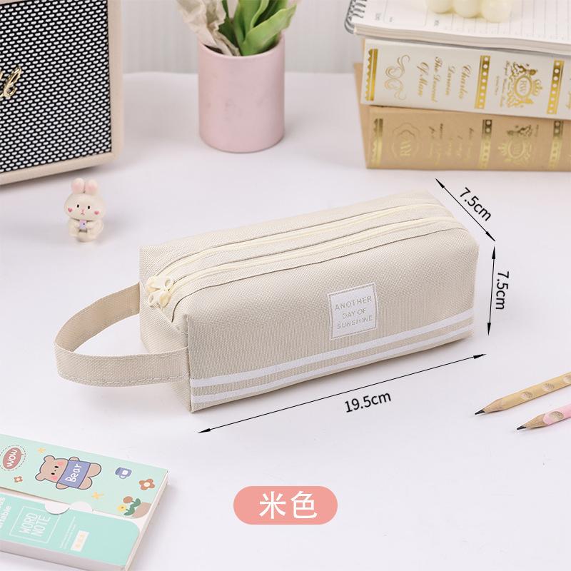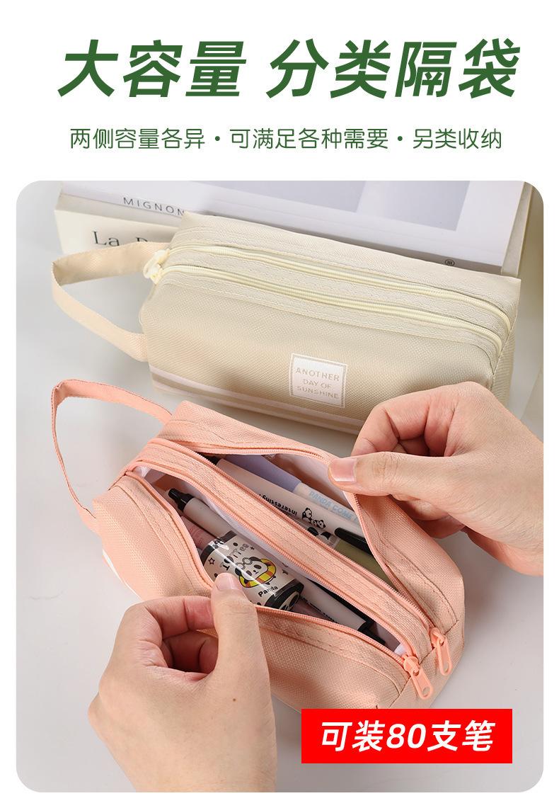 Estuche de tela Oxford de doble capa, estilo coreano, sencillo, de gran capacidad, con doble tirador, para estudiantes de primaria, portátil, con cremallera, para papelería