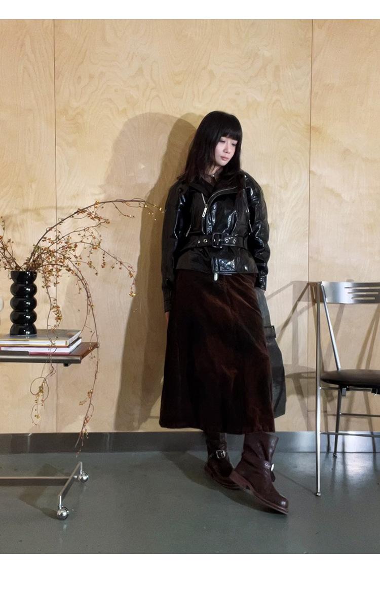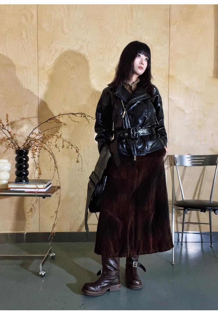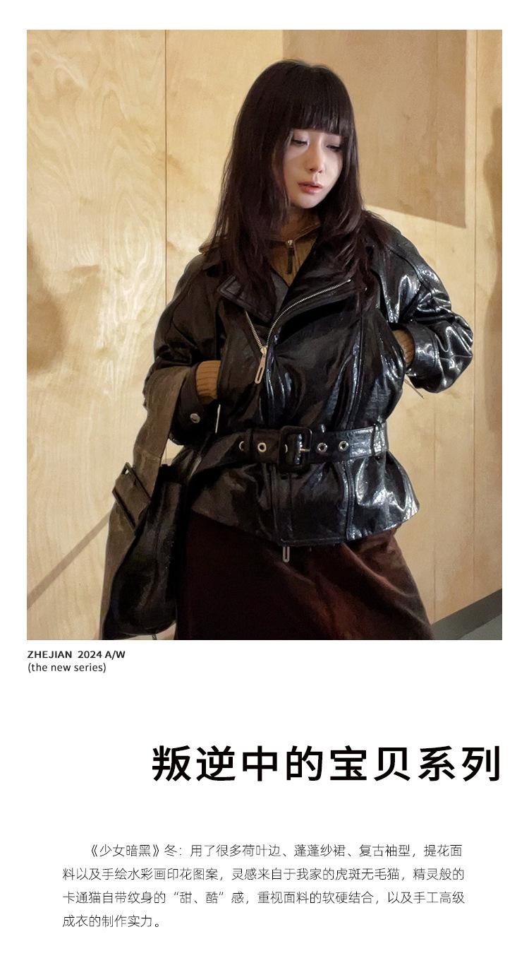 Ropa de diseñador para mujer Piel de cordero encerada al aceite Guapo Lleno de conciencia Elegante Retro Moderno Chaqueta de algodón y cuero