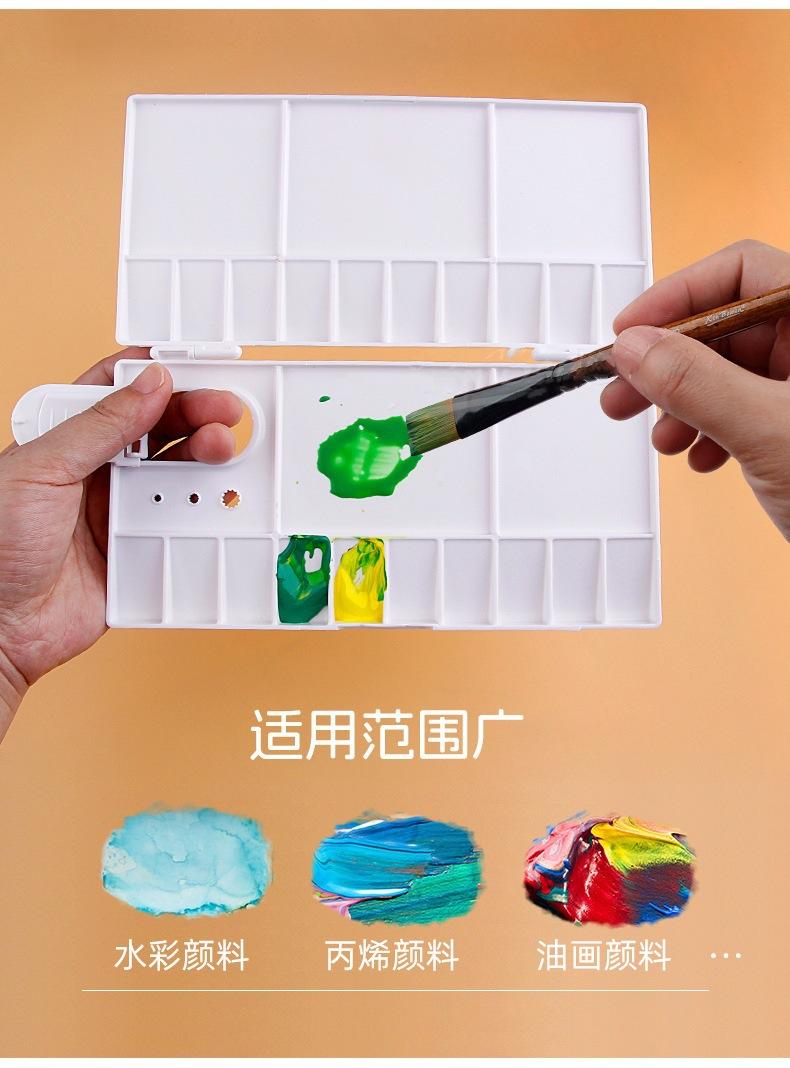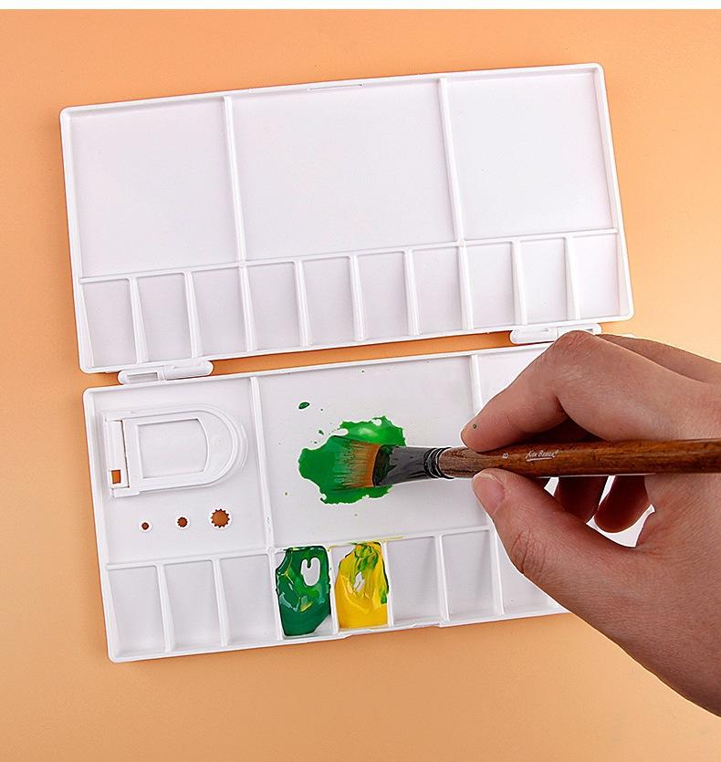 Paleta de acuarela plegable de plástico para pigmentos acrílicos, ideal para estudiantes.