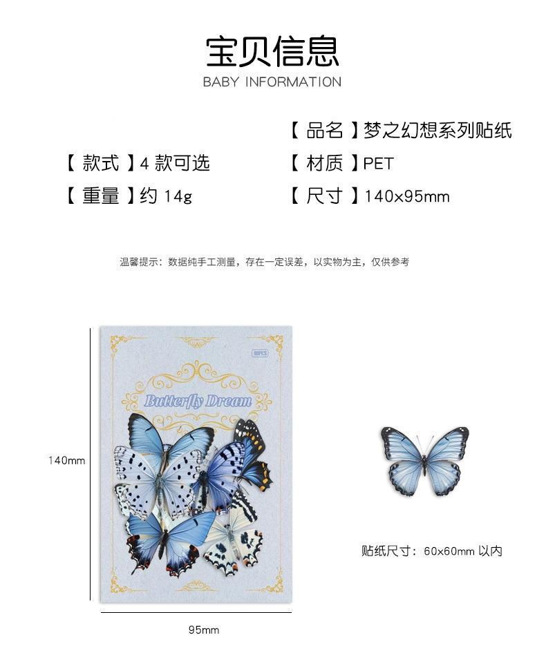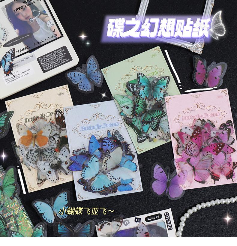 Bolsa de pegatinas de fantasía de mariposa DIY, tarjeta de mariposa goo, cuenta de mano, collage, material base, pegatina decorativa impermeable de PET, venta al por mayor