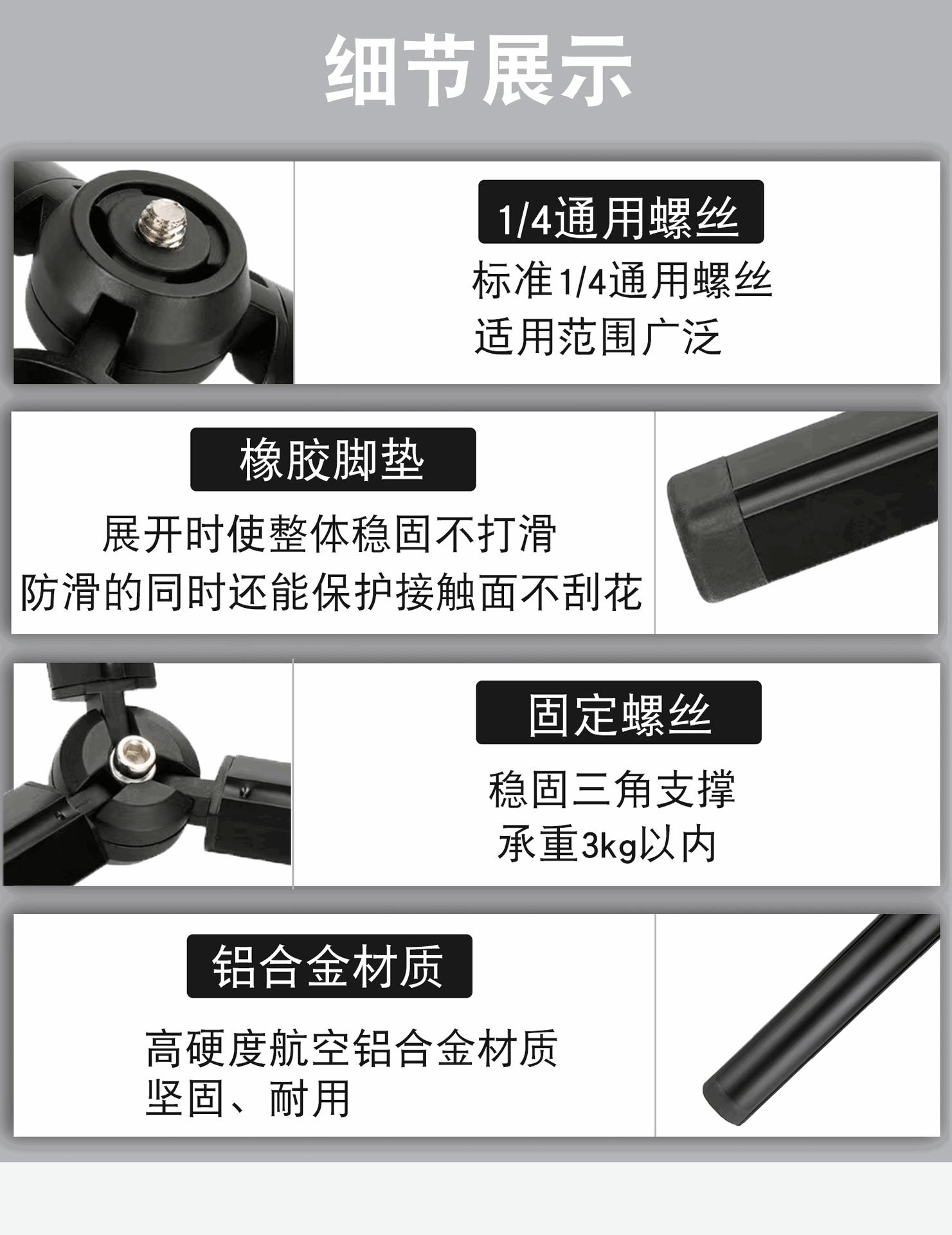 Trípode de mano con cardán, estabilizador de bolsillo de tres ejes para cámara micro SLR, soporte triangular universal de aleación de aluminio.