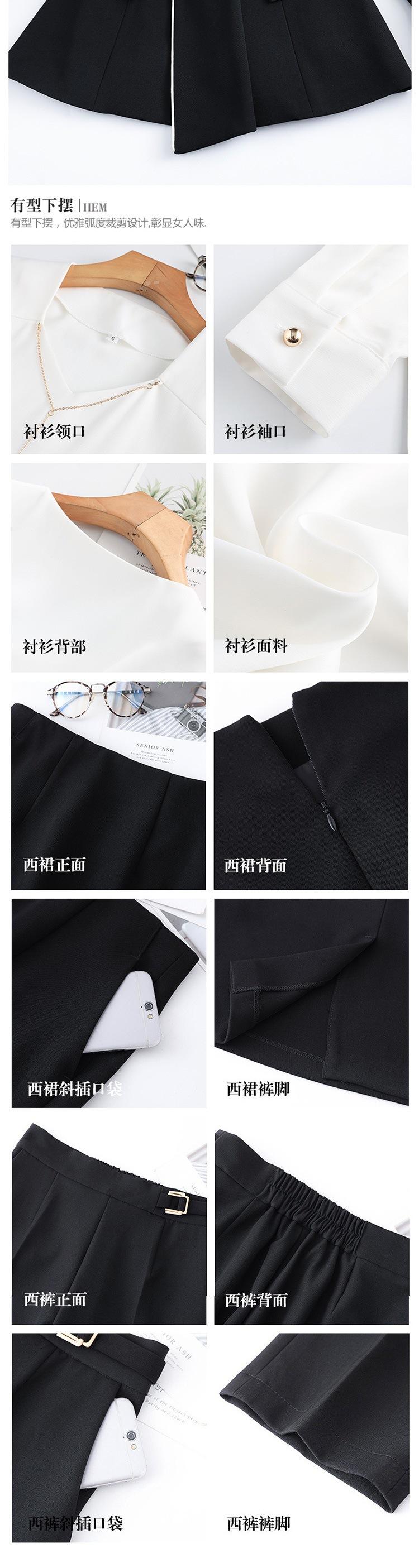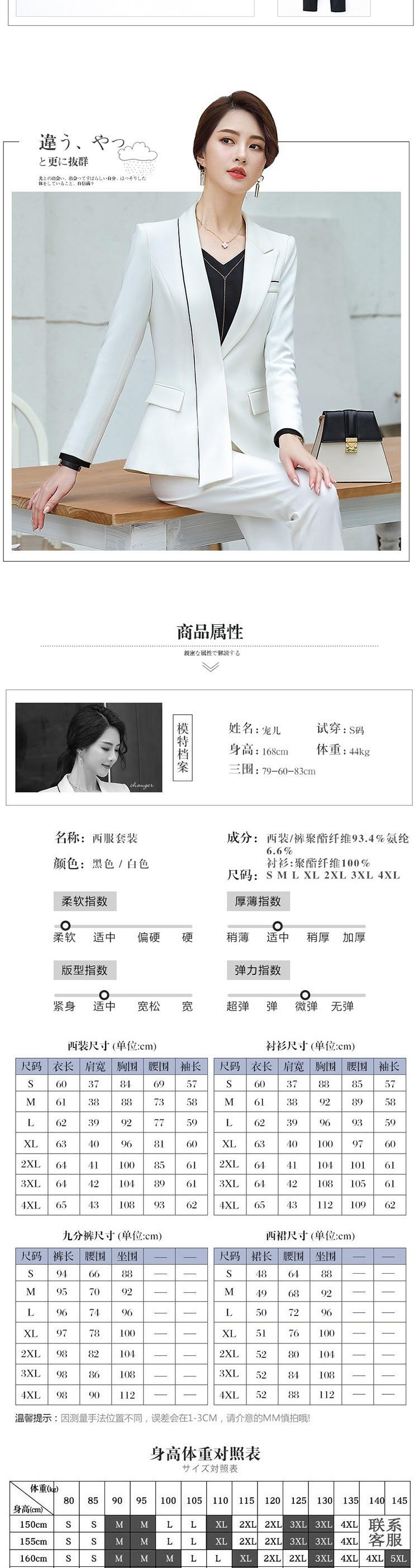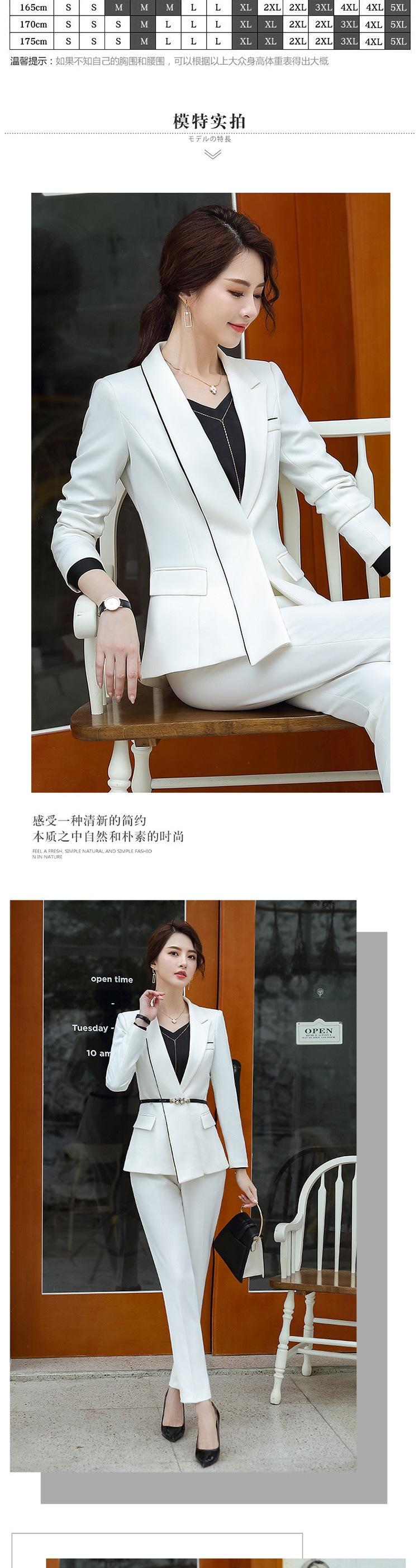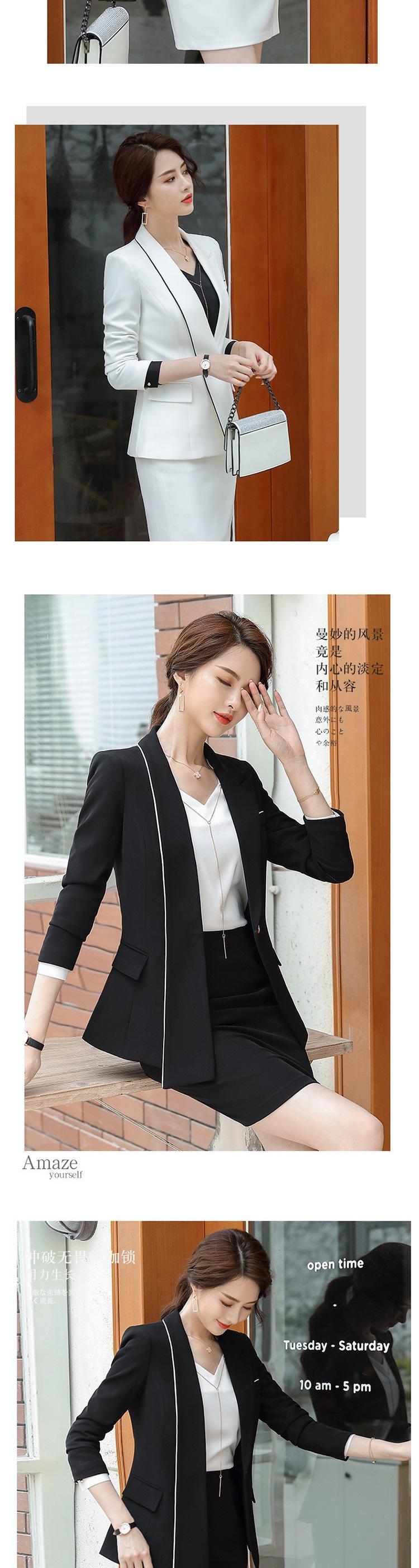 White (suit + skirt), Black (suit + skirt), White (suit + pants), Black (suit + pants), White (suit + pants + ...