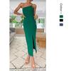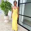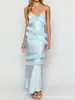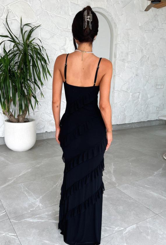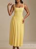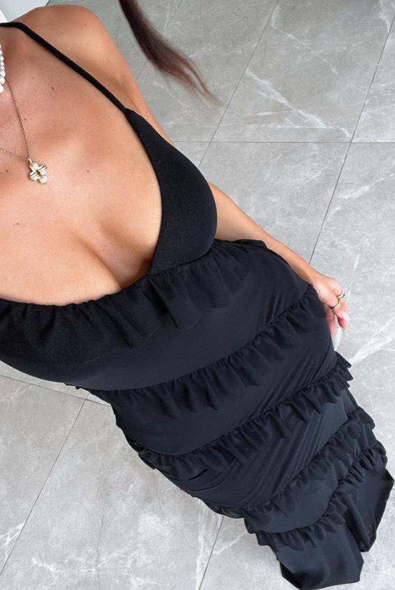 2025 Primavera y Verano Nuevo Moda Femenina Estilo Europeo y Americano Sexy Espalda Descubierta con Volantes Color Puro Vestido de Tirantes