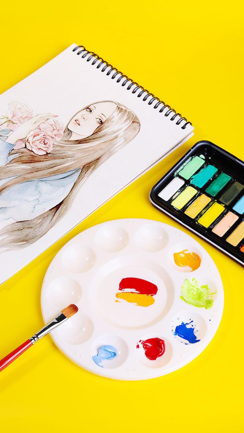 Paleta de colores redonda de 10 agujeros, suministros de pintura, paleta de colores, paleta de colores, fábrica de paletas de colores redondas