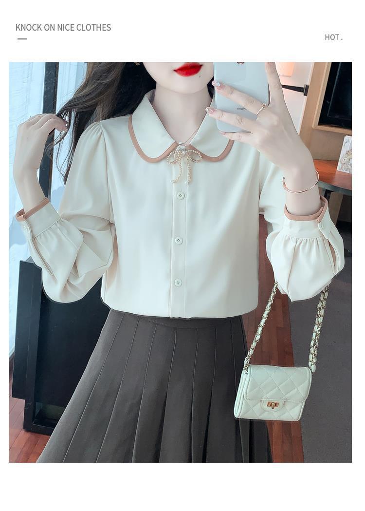 Camisa de manga larga para mujer, nueva camisa de mujer 2024 con cuello de muñeca y diseño elegante de temporada primavera y otoño.