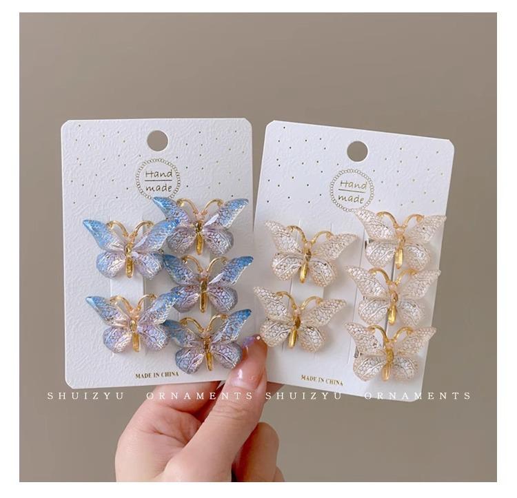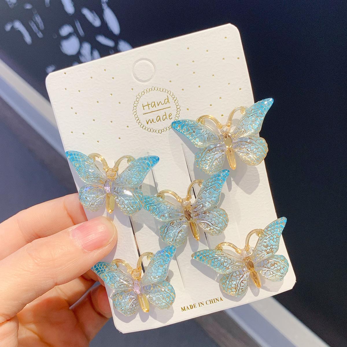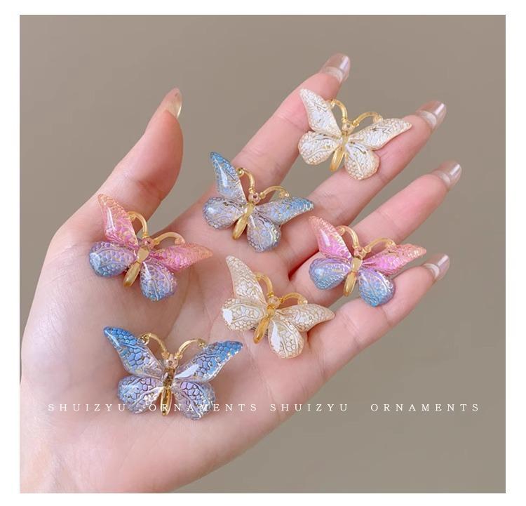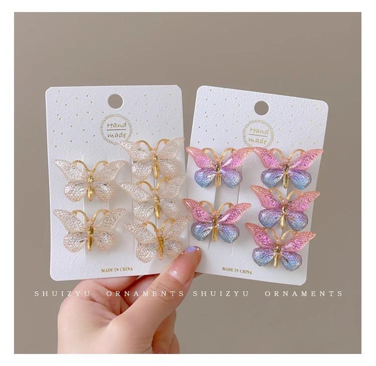 Tocado de horquilla para niños Súper lindo Súper hada tridimensional niña mariposa horquilla niña color degradado lindo clip accesorios para el cabello