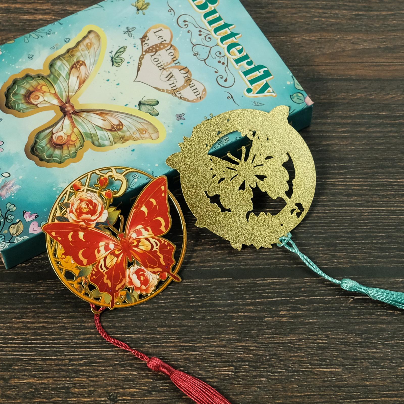 Hermosos marcadores de metal hueco de la serie Butterfly de alto valor de color. Marcadores de metal esenciales de lectura de gran venta transfronteriza de Amazon.