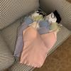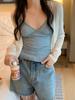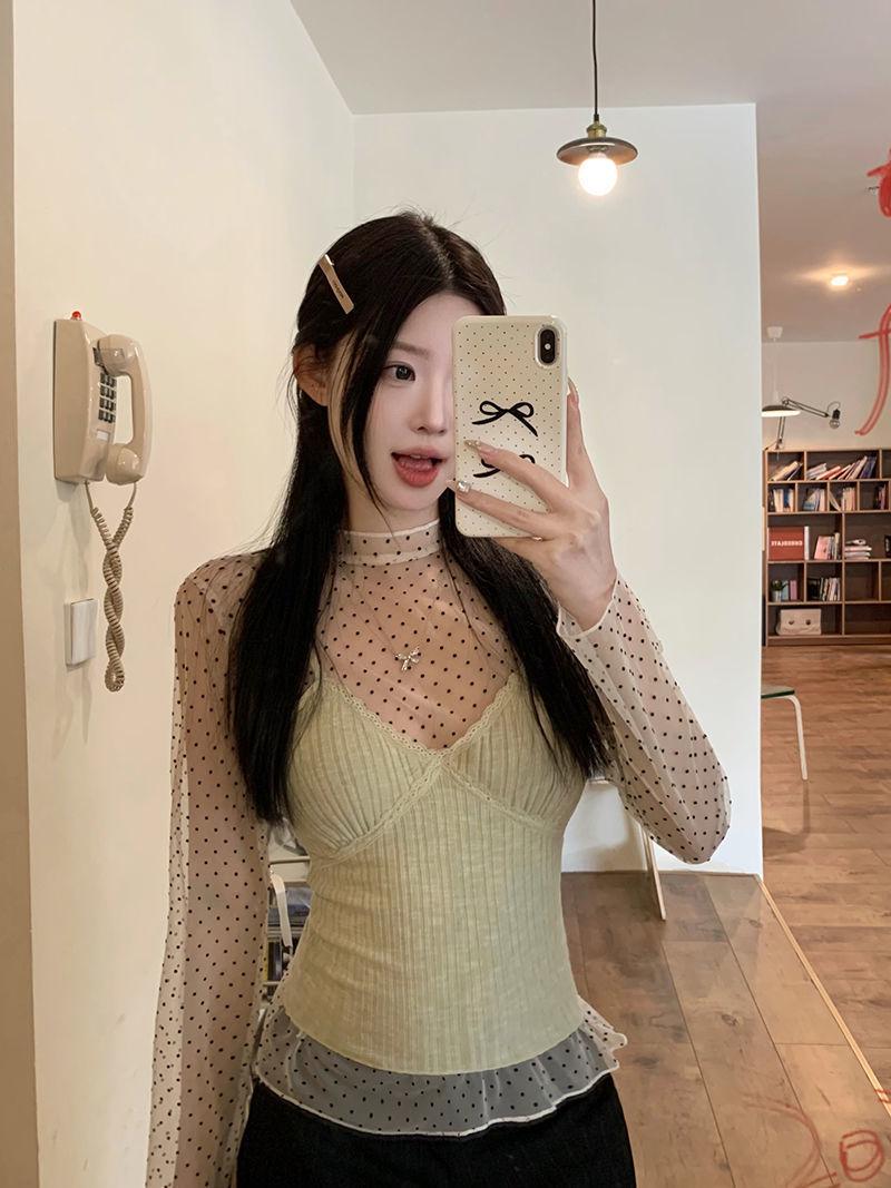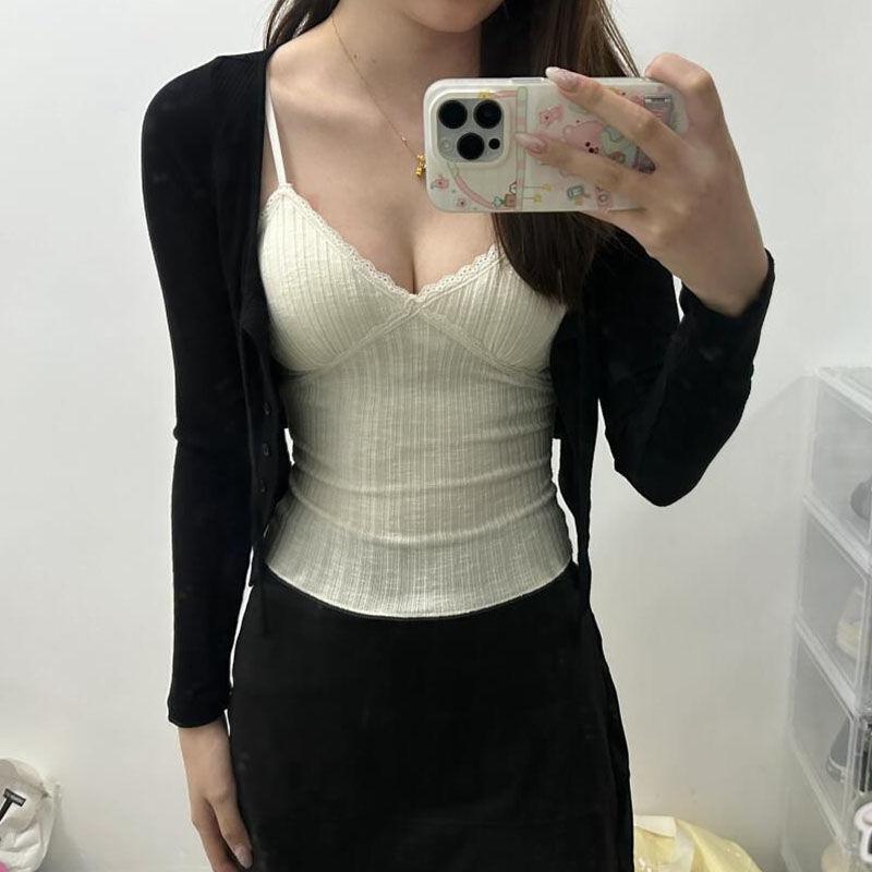 Camisola de Encaje Estilo Deseo Puro con Cuello en V para Mujer Ropa Exterior Ajustada Ropa Interior Sexy Chica Hot Espalda Hermosa Top Dulce Básico