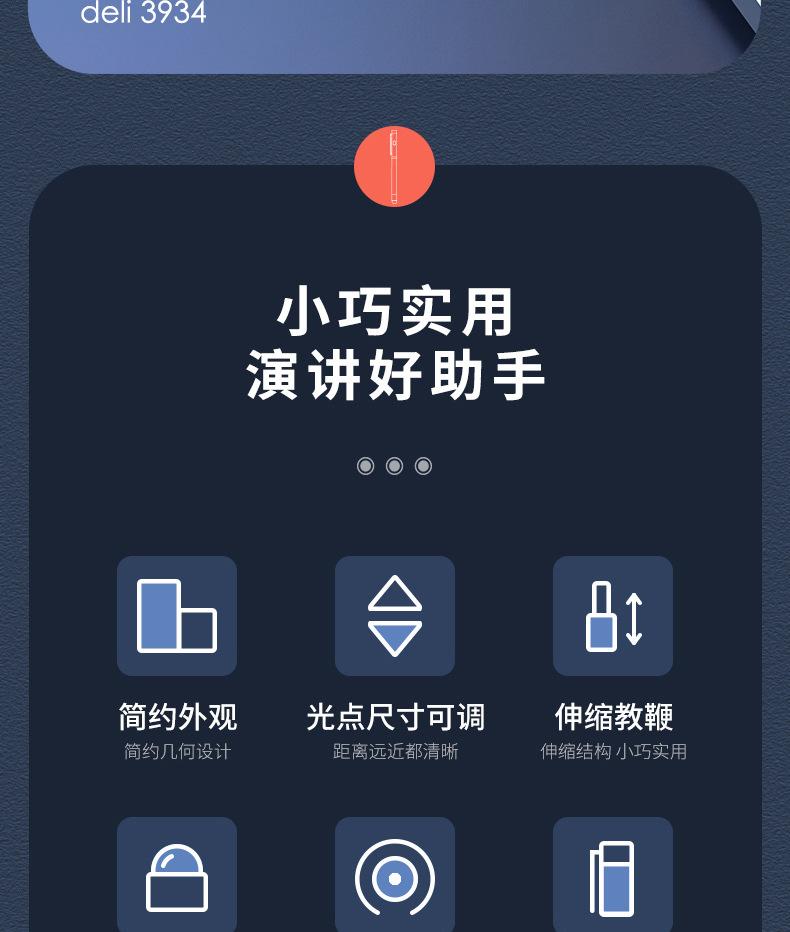 Puntero láser de punto rojo Deli 3934T, bastón de enseñanza especial para profesores, puntero de pantalla multimedia, bastón de enseñanza retráctil para el hogar.