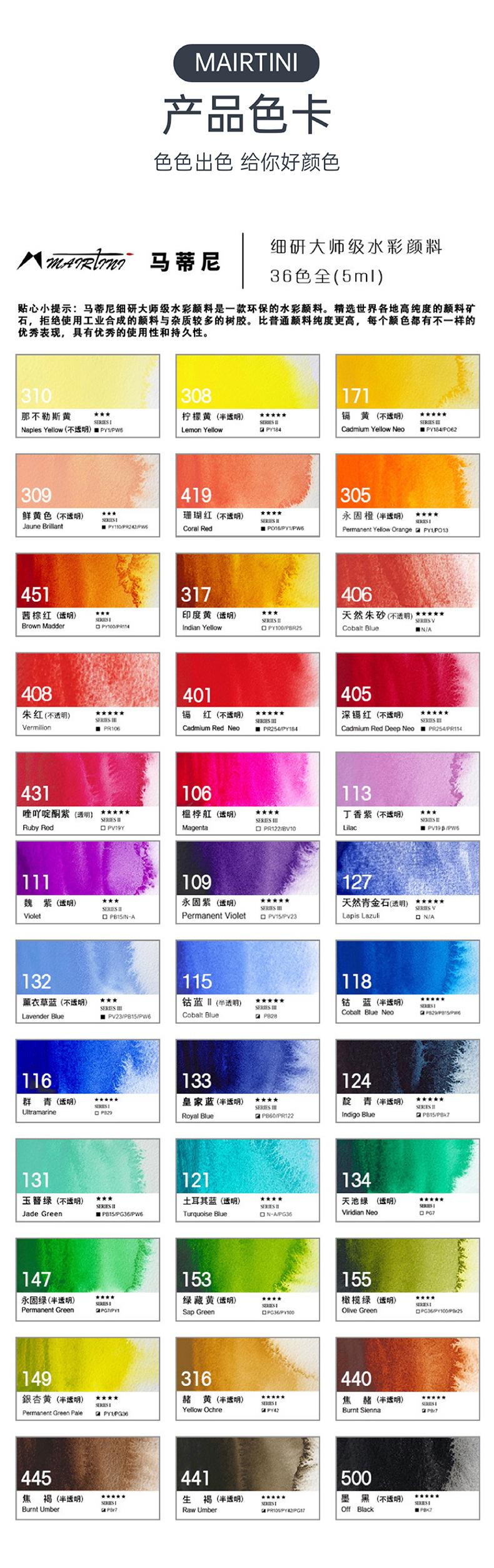 Pintura de acuarela Martini master 5ml 18 colores 24 colores 36 colores traje tubular arte principiante estudiantes de primaria