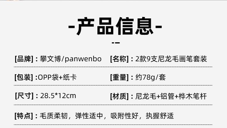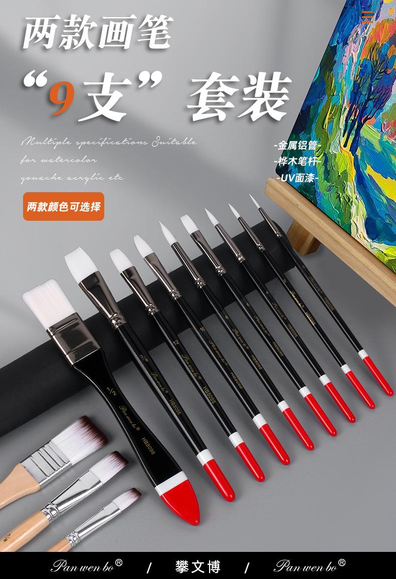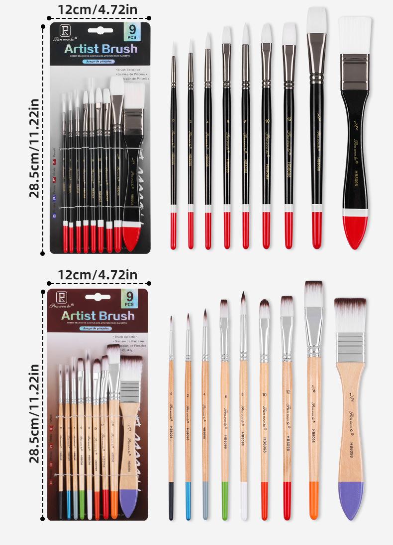 Set de 9 Pinceles de Pelo de Nylon Amazon Transfronterizo para Pintura al Óleo Mixta, Grafiti, Agua, Tiza, Acuarela