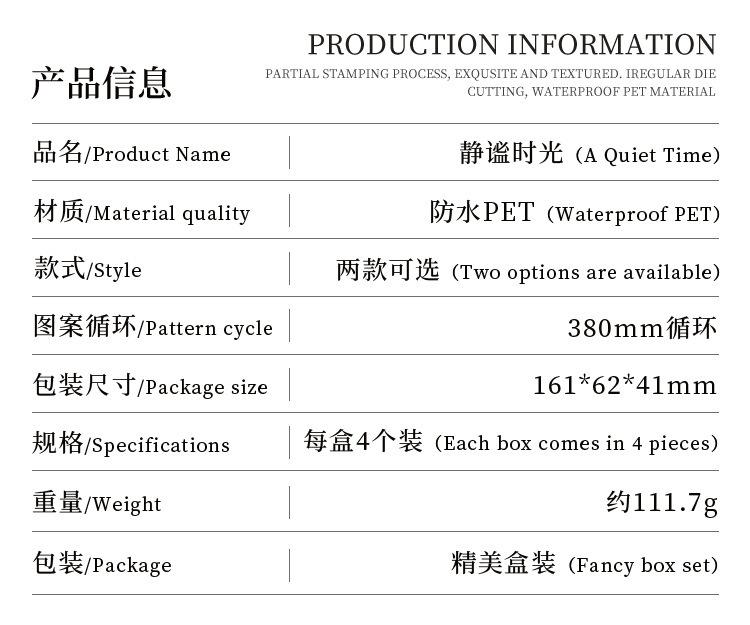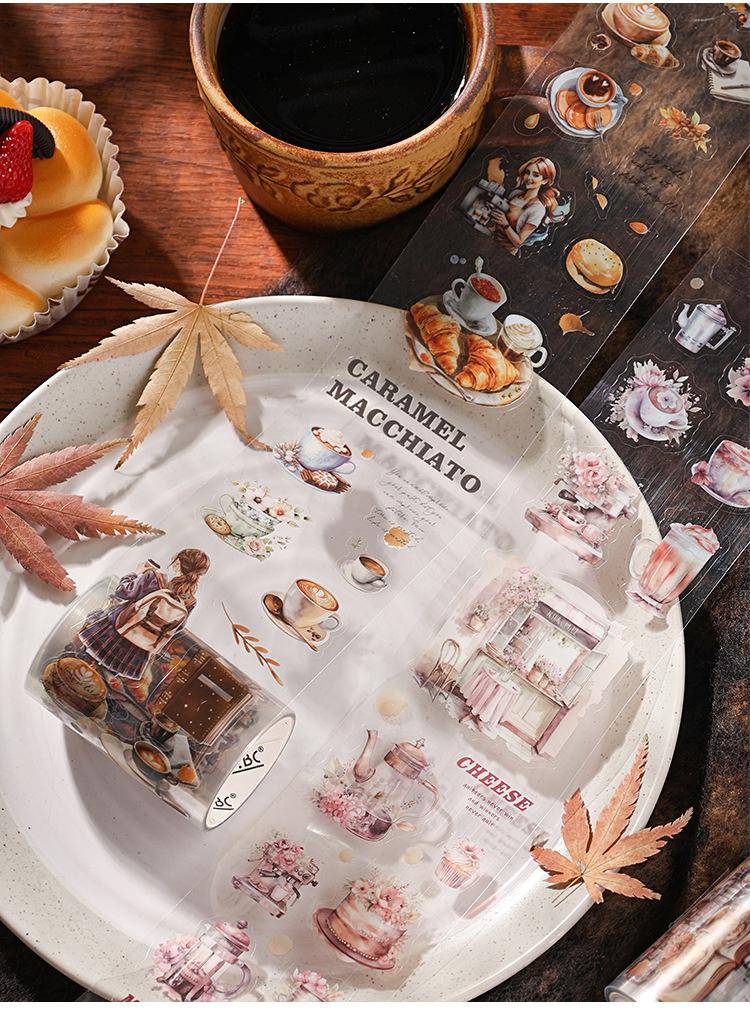 Juego de cinta adhesiva transparente impermeable de PET Quiet Time, pegatinas para diario de cuentas de mano, pegatinas decorativas de cuentas de mano retro transfronterizas