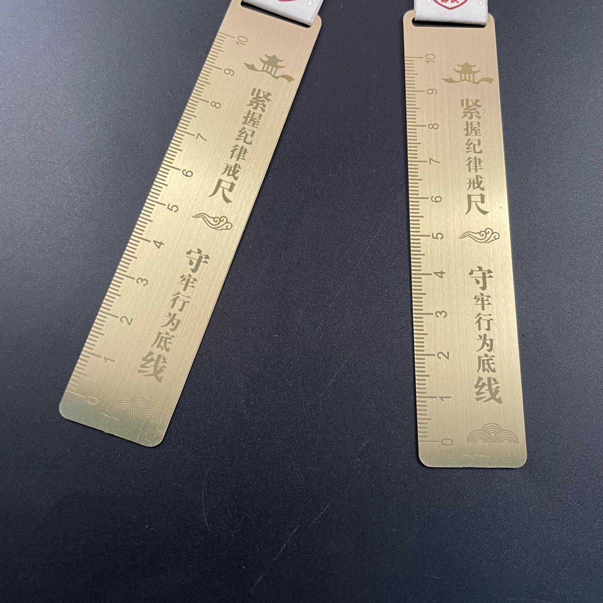 Marcador de regla de latón personalizado etiqueta de cuero por corrosión marcador cepillado metal marcador Wenchuang recuerdo fábrica mayoreo