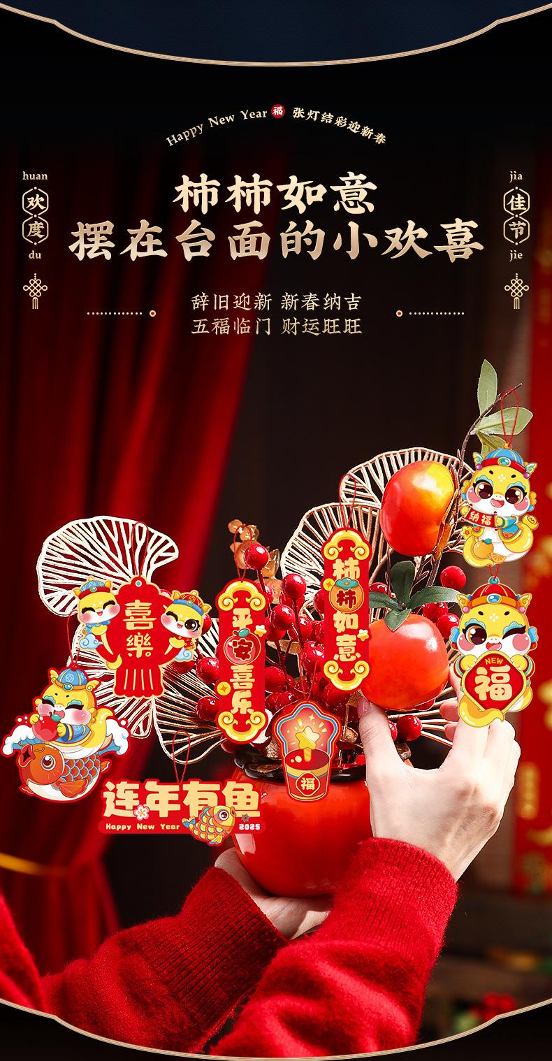 Decora la sala de estar de un nuevo hogar. Adornos de caqui para suministros de ceremonia de mudanza. Juego completo de decoraciones para la sala de estar del año nuevo 2025. Adornos de caqui para suministros de ceremonia de mudanza.