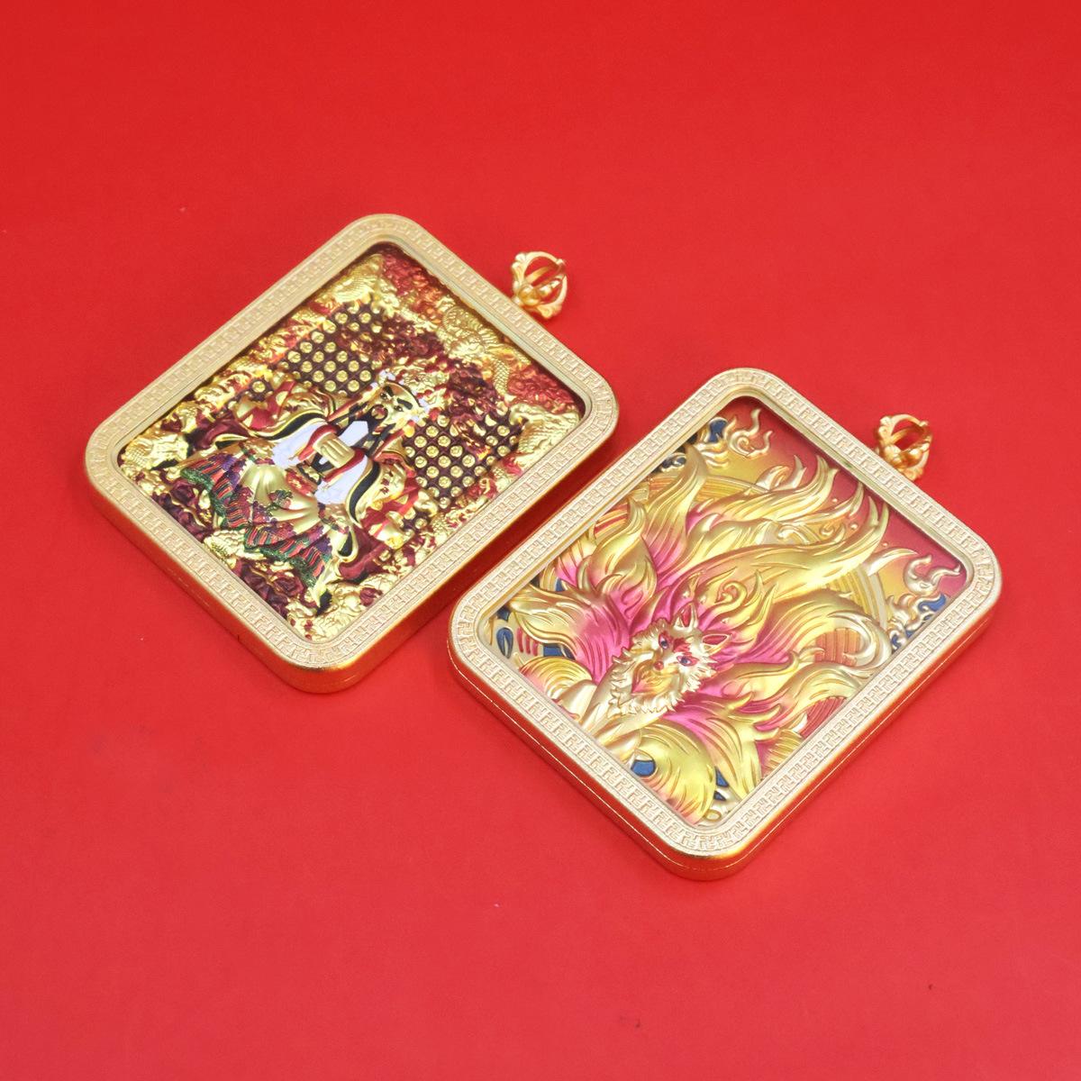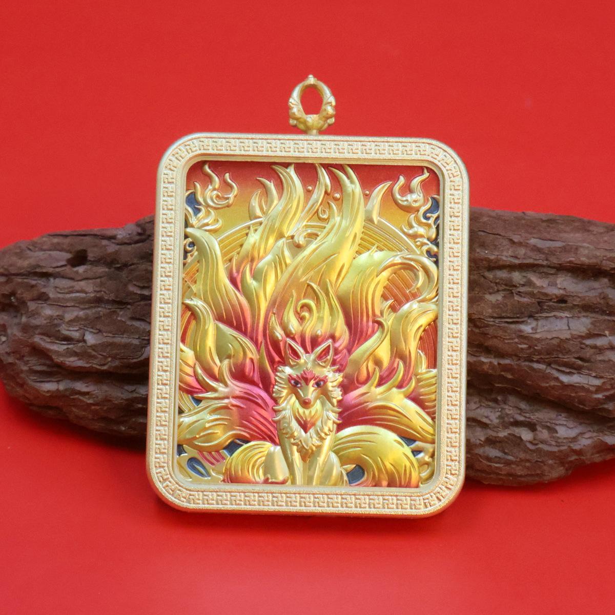 Colgante Thangka de zorro de nueve colas chapado en oro con relieve estéreo para hombre y mujer, regalo de moda nacional, hecho a mano.