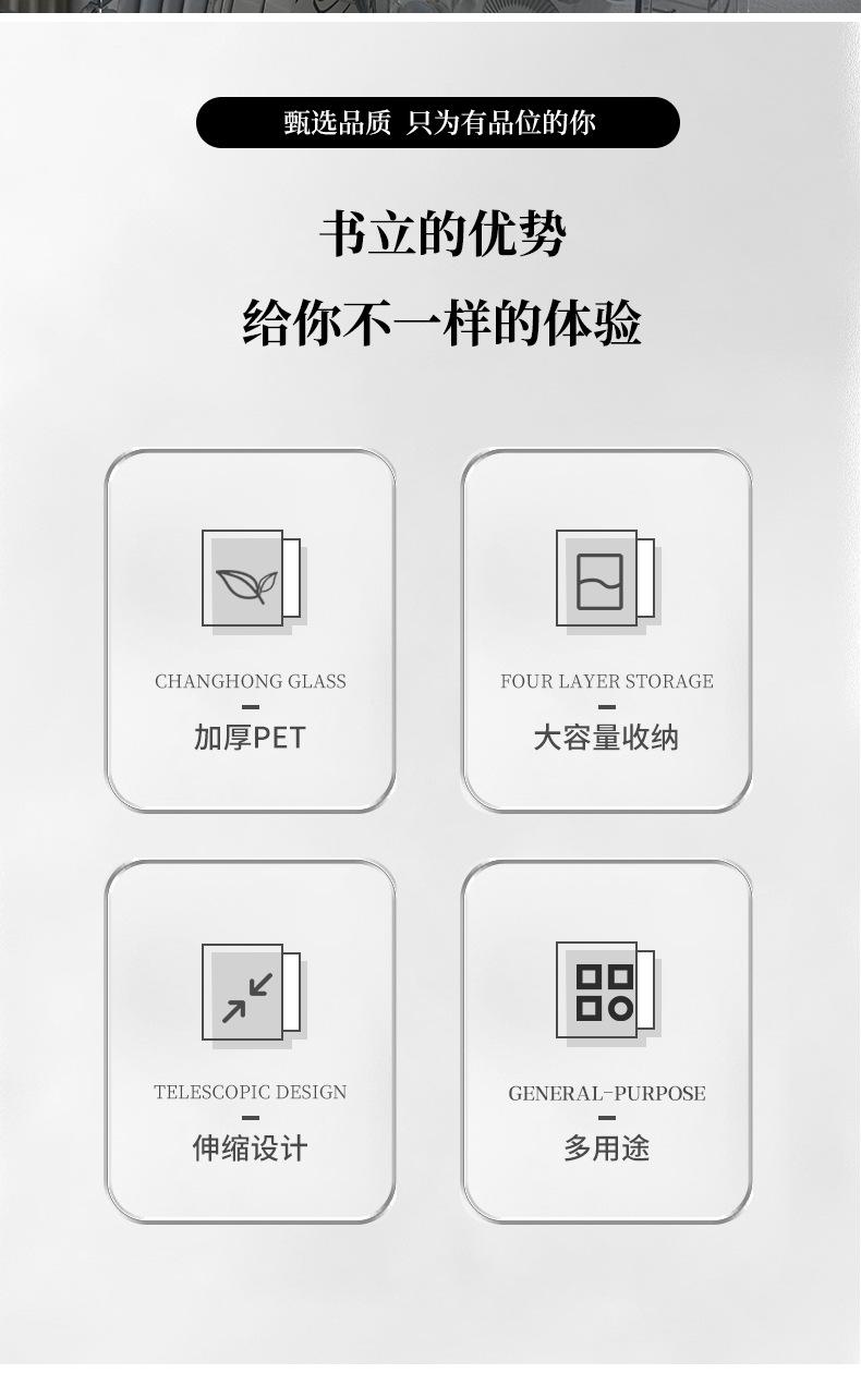 Estantería retráctil transparente para libros, escritorio para estudiantes, almacenamiento de libros, estantería gruesa para archivos y papelería de oficina.