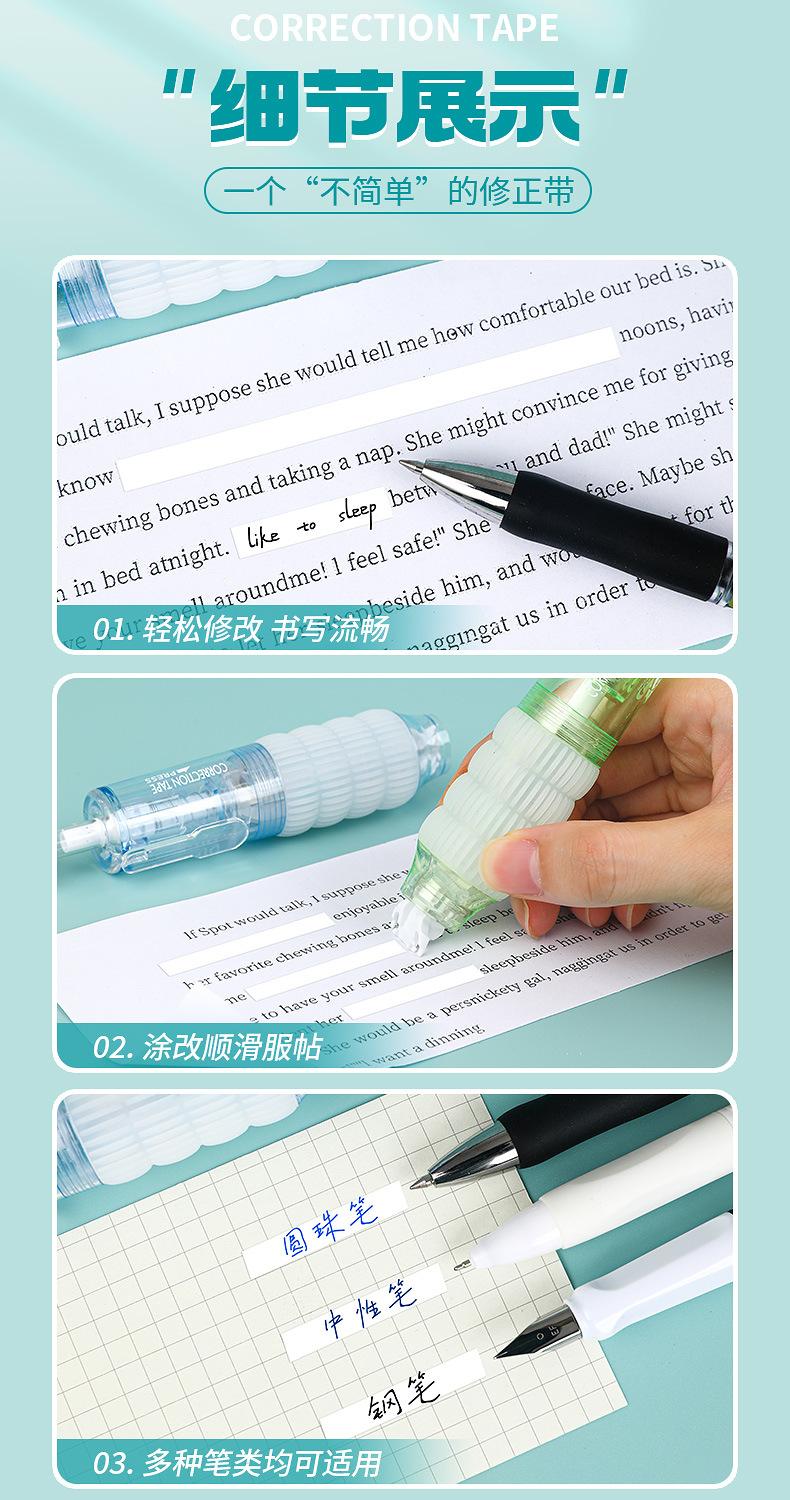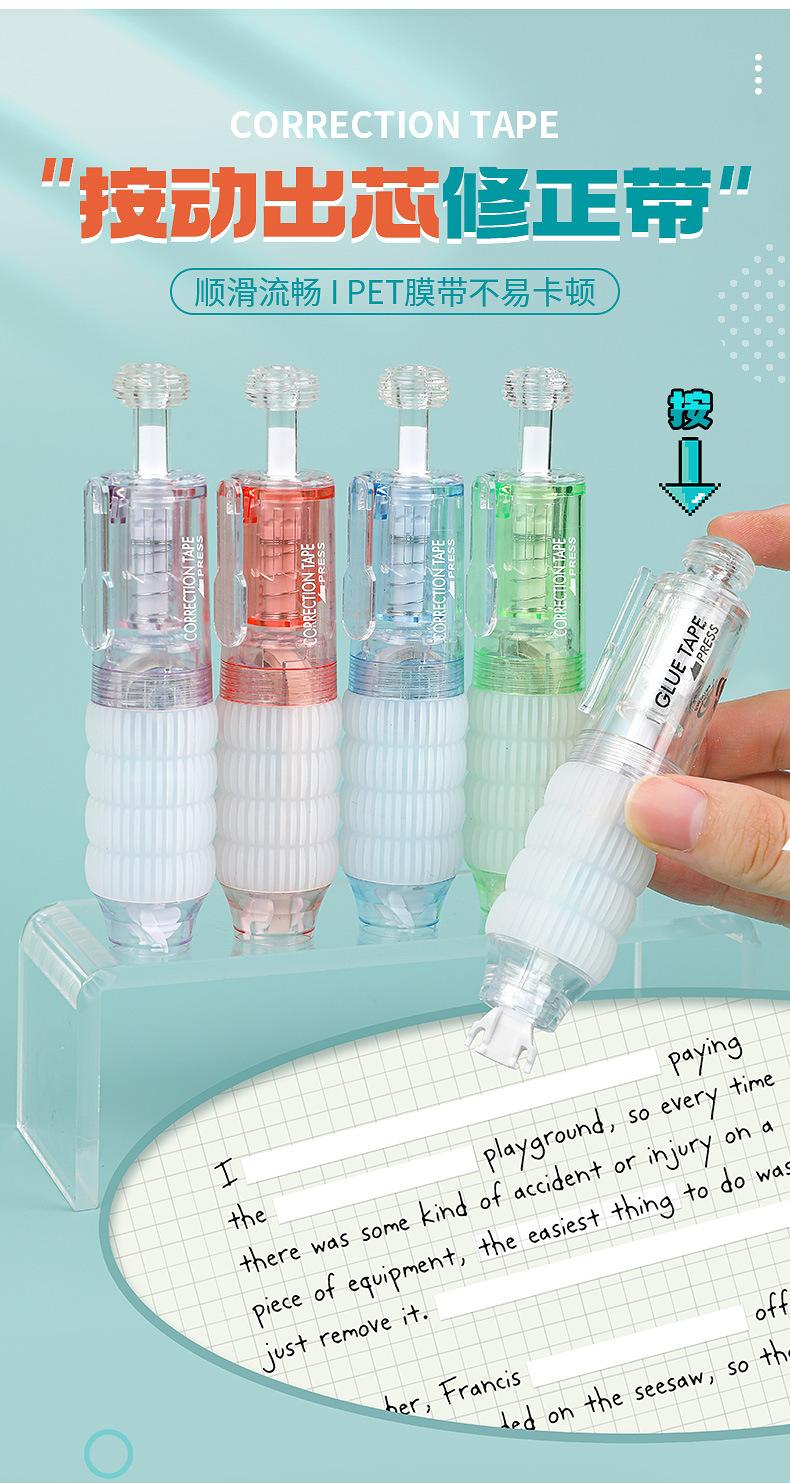 Presione la cinta correctora para niñas con alto valor de color transparente estudiantes de secundaria junior para reemplazar el núcleo cinta correctora muda estilo ins