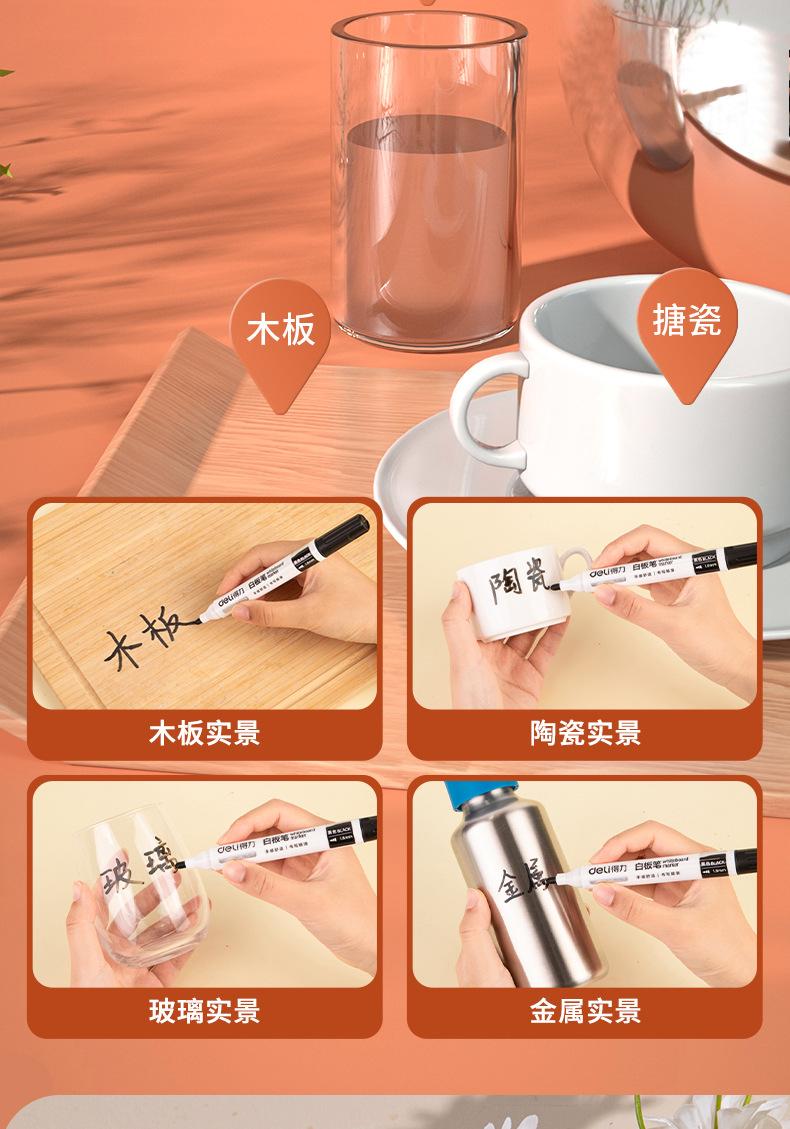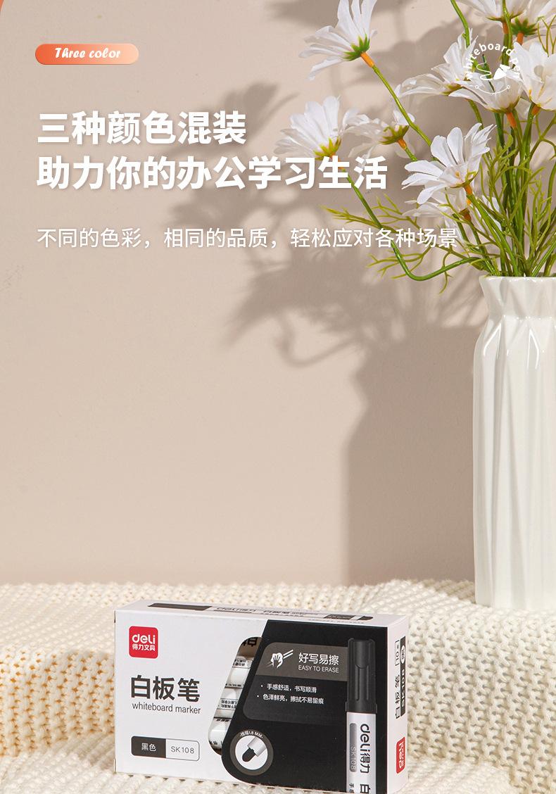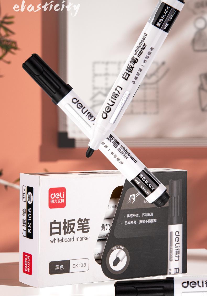 Plumón de Pizarra Blanca Borrable Deli Sk108, Escritura Negra a Base de Agua, Marcador de Pizarra Colorido, Borrable, Venta al por Mayor
