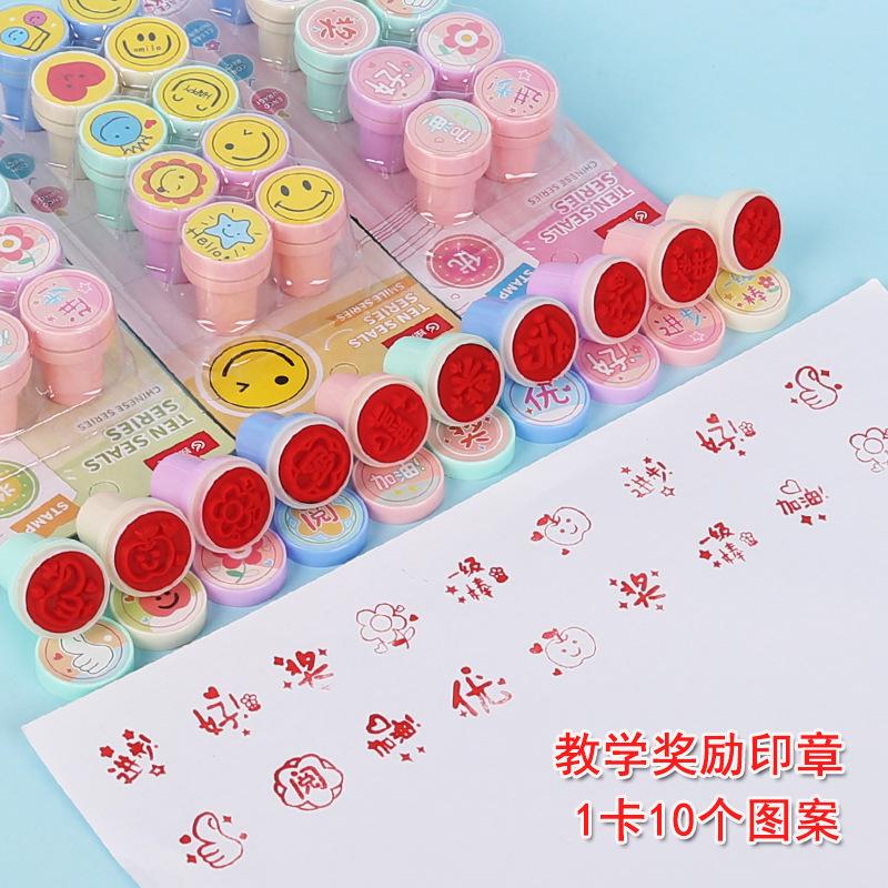 Estudiantes de primaria de dibujos animados premian con un sello a maestros de jardín de infantes que animan a los niños a hacer pequeños regalos a los maestros para corregir las tareas. Comentarios