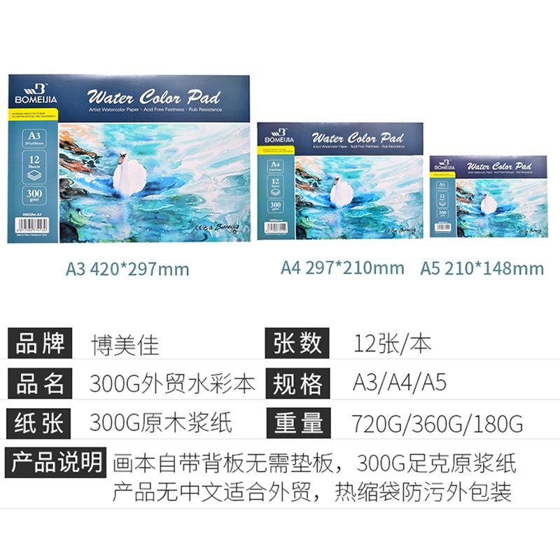 Papel de Acuarela Grueso de 300g Transfronterizo con Encuadernación con Pegamento, 100% Pulpa de Algodón, Álbum de Pintura A3 A4 A5, Libro de Acuarela de Tapa Dura