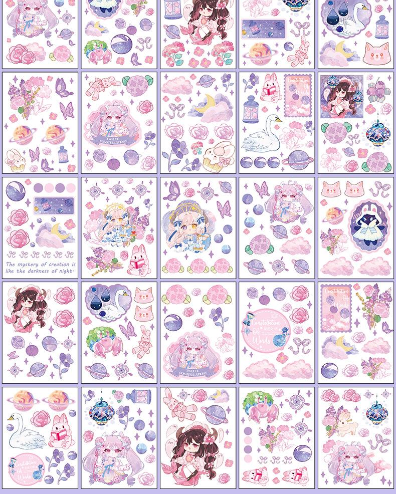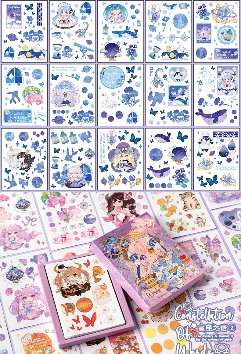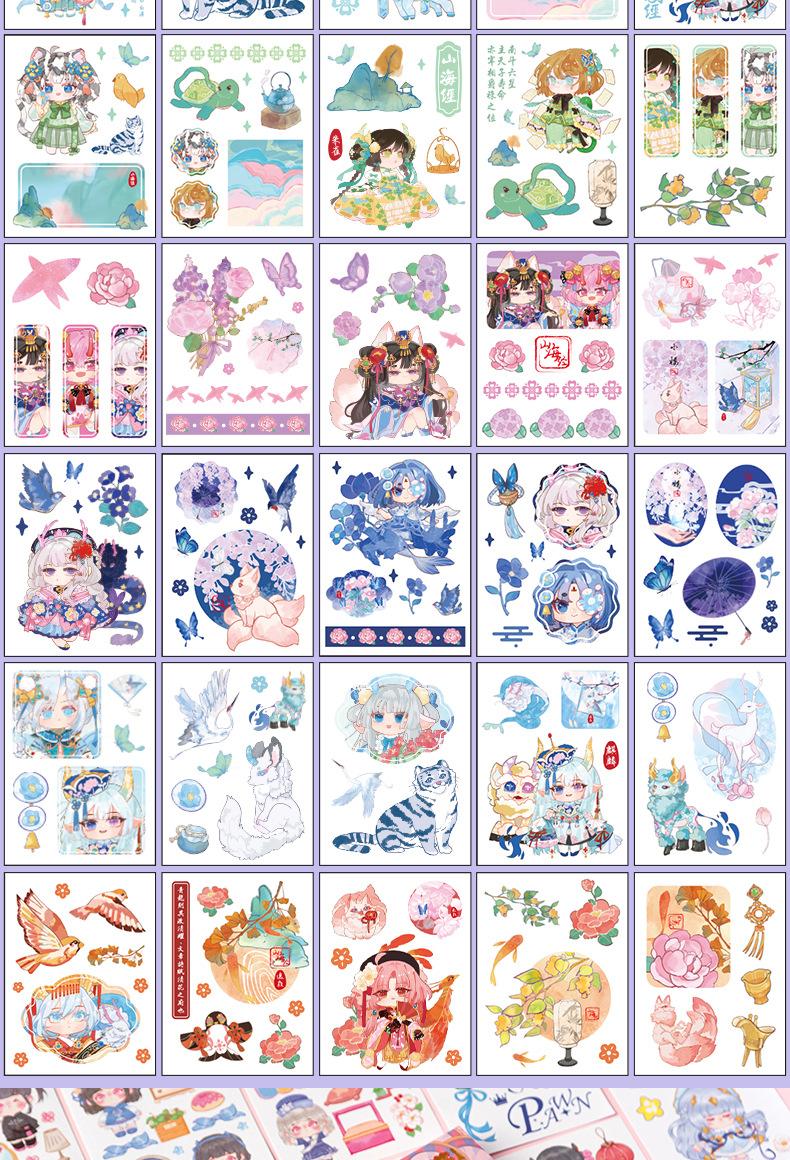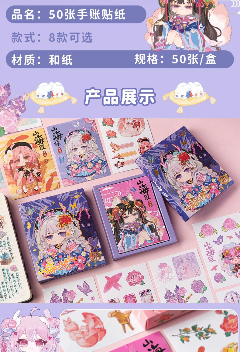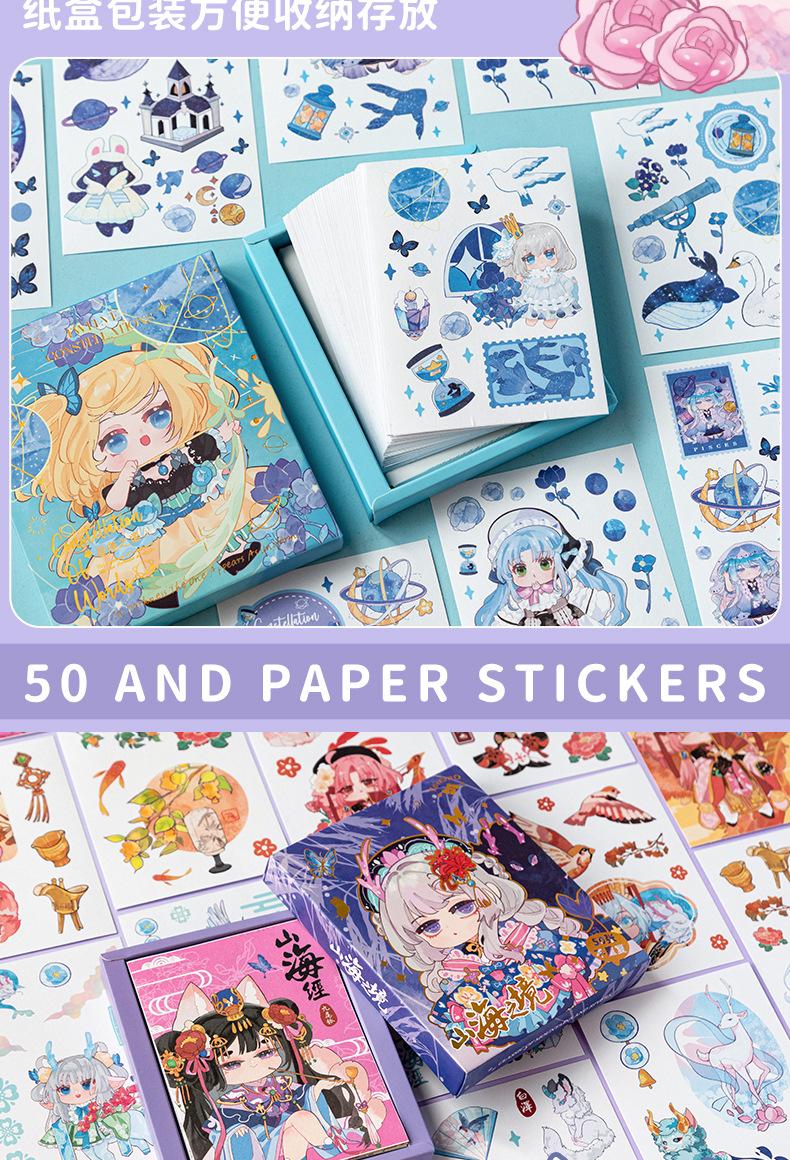 Stickers de Diario Yanshe: 50 Hojas Únicas de Papel Japonés Decorativas Estilo Dibujo Animado Lindo Femenino Pegatinas Originales para Diario