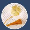 Marcapáginas vintage creativo y exquisito de estilo chino clásico con forma de trébol de cuatro hojas, regalo para estudiantes, con vena de hoja de metal.