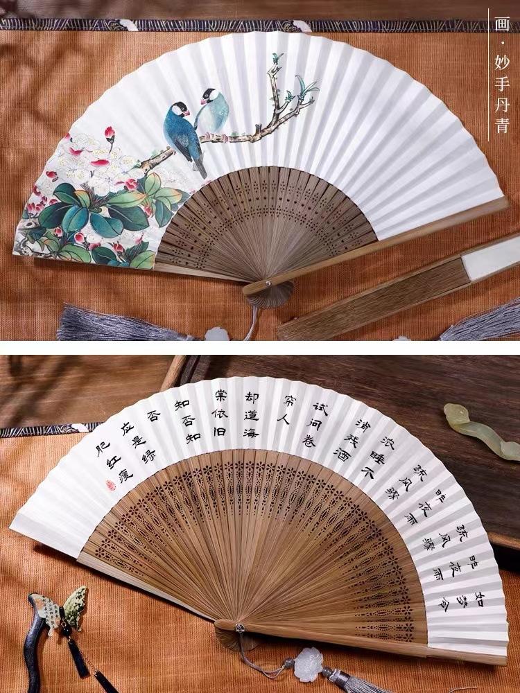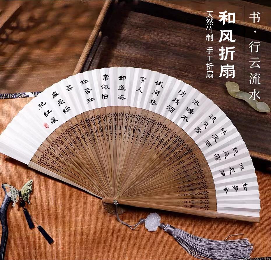 Fabricante Venta al por Mayor Abanico Plegable Estilo Japonés para Mujer Abanico de Bambú Completo Estilo Chino Clásico Estilo Antiguo 6 pulgadas Pequeño Abanico Plegable de Regalo