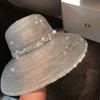 Sombrero de paja de cuenco de viaje de primavera y verano plateado sombrero para el sol protector solar sombrero de paja plegable vacaciones estilo Hepburn sombrero de pescador femenino
