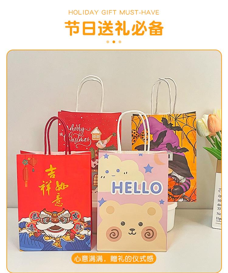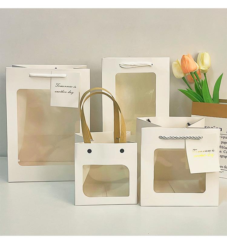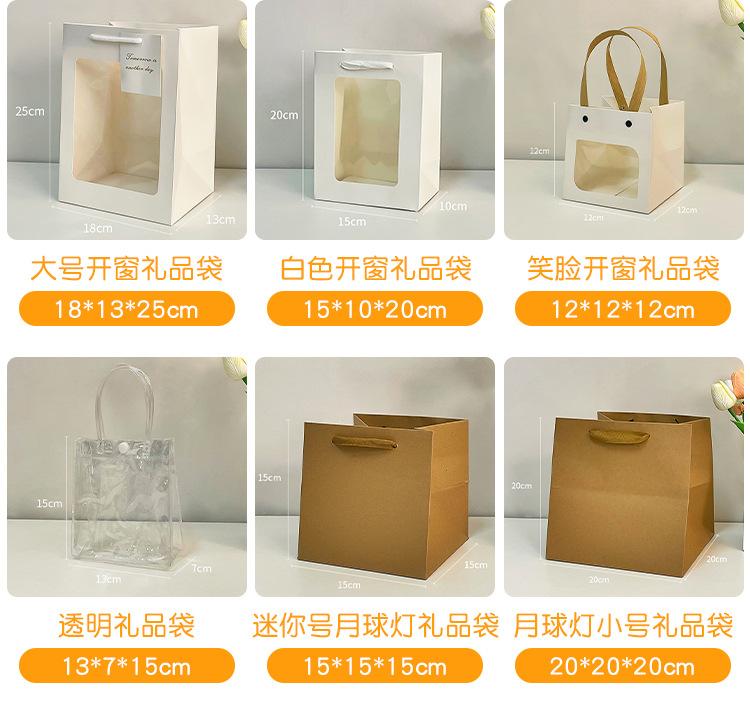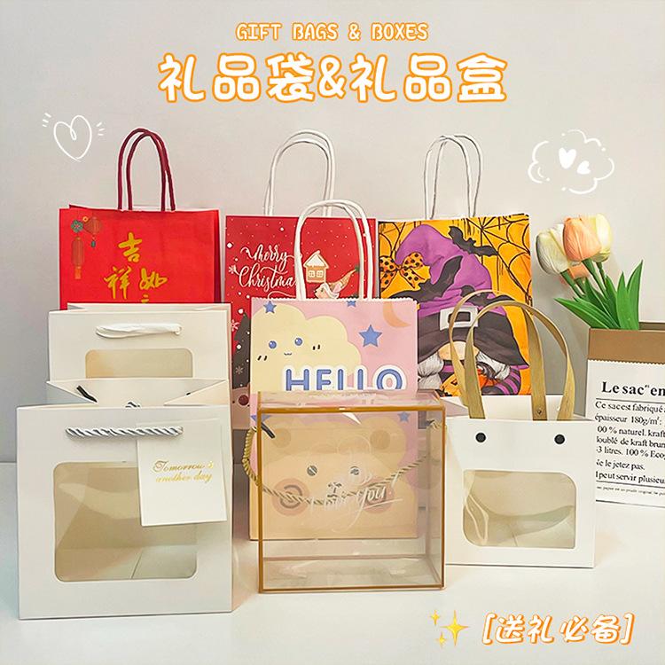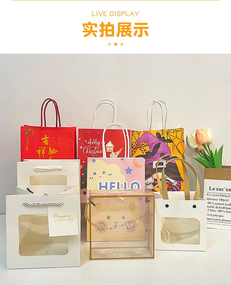 Bolsa de papel kraft para Navidad y Año Nuevo, bolsa de regalo transparente portátil, caja de regalo con ventana, suministro al por mayor