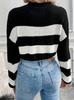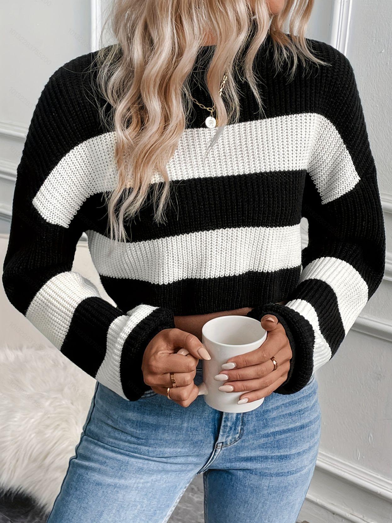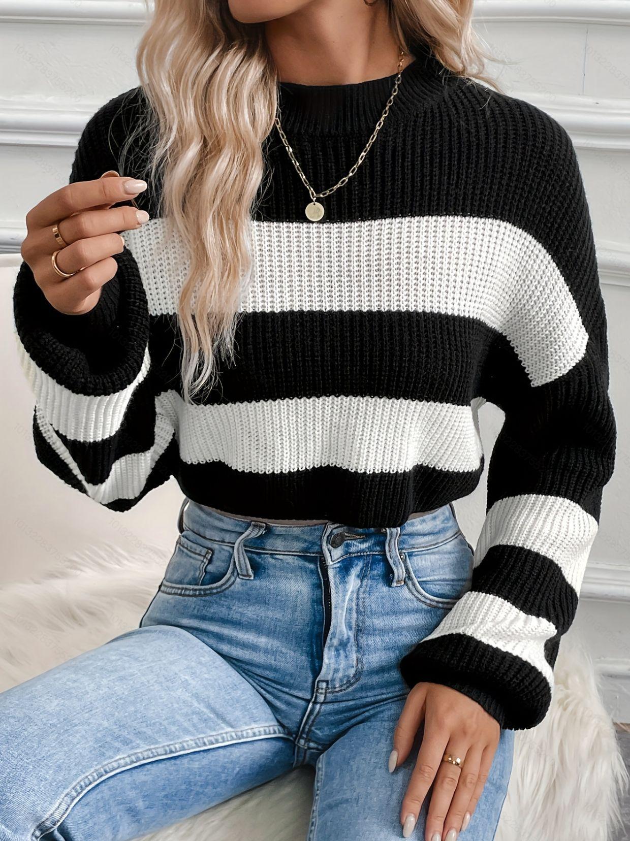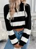 Suéter de manga larga con cuello redondo transfronterizo de Amazon para otoño e invierno de 2024, nuevo suéter holgado a rayas europeas y americanas para mujer