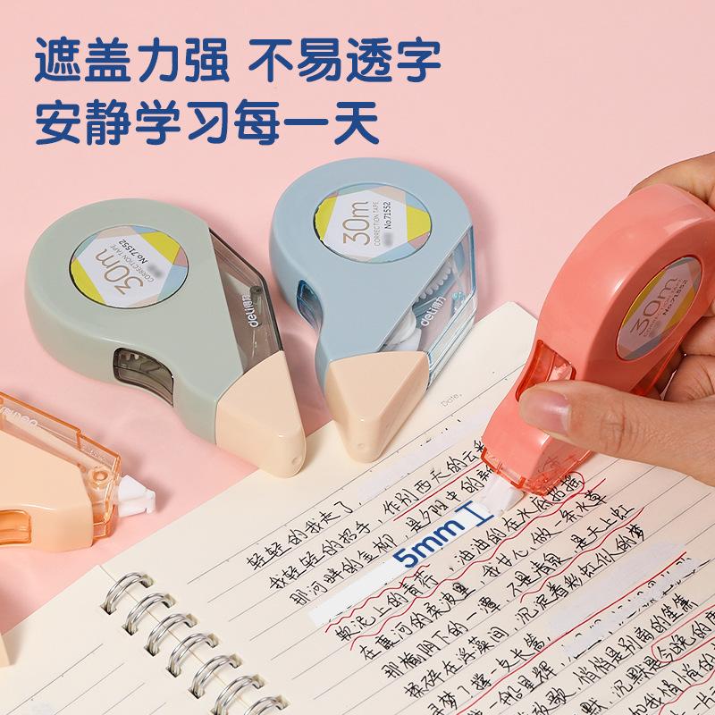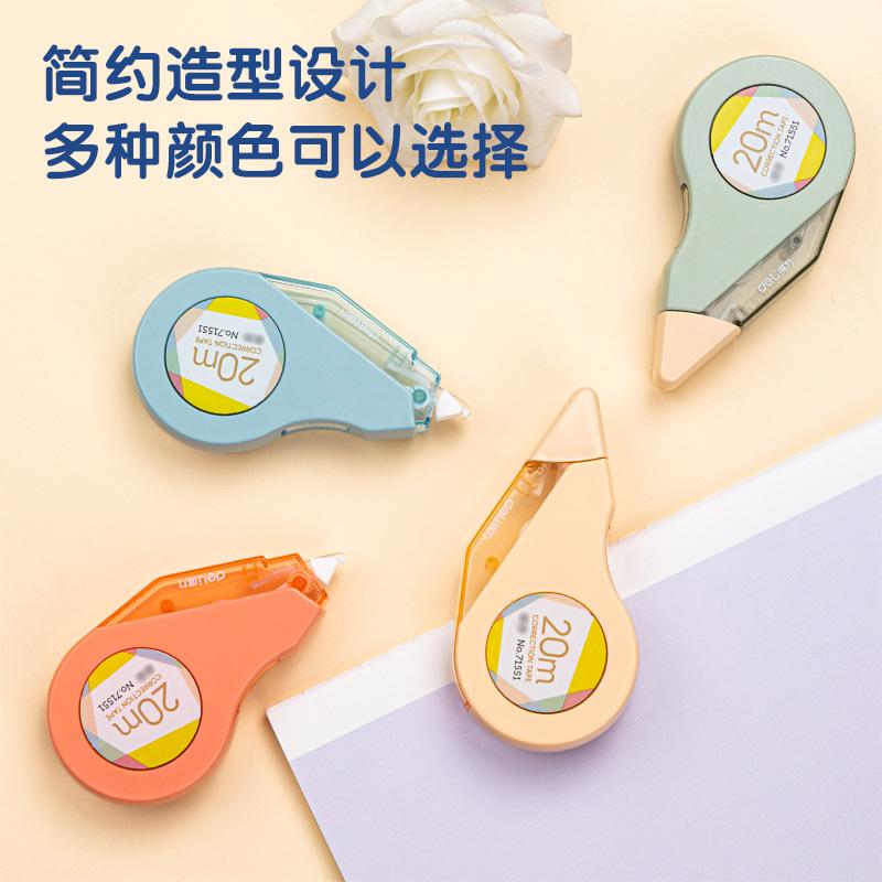 Cinta correctora Deli 71551-20m para estudiantes con gran capacidad y alto valor de color cinta correctora silenciosa para estudiantes de primaria portátil