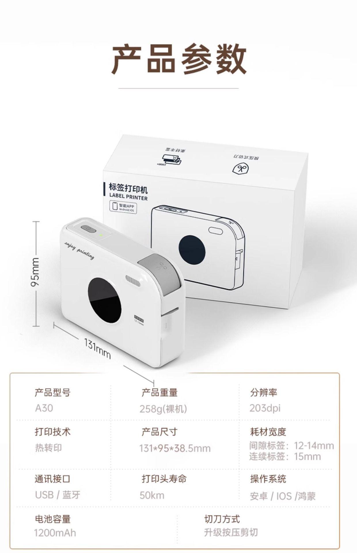 Impresora de etiquetas de transferencia térmica phomemo A30, multifunción, pequeña, para uso doméstico.