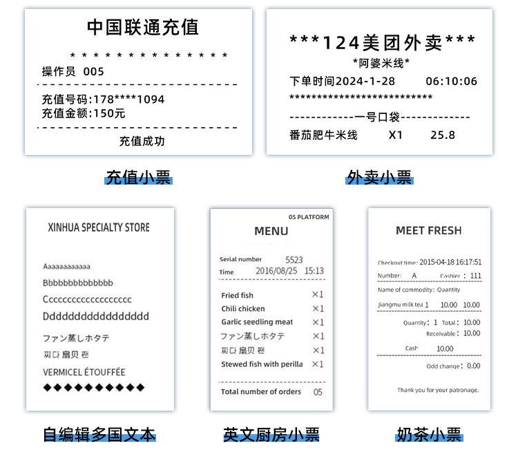 - Impresión de boletos de taxi, impresión de recibos de tarifa de gestión, impresión de recibos, impresión de información de pedidos de restaurantes, etc. Pequeño y ligero, fácil de llevar al trabajo.