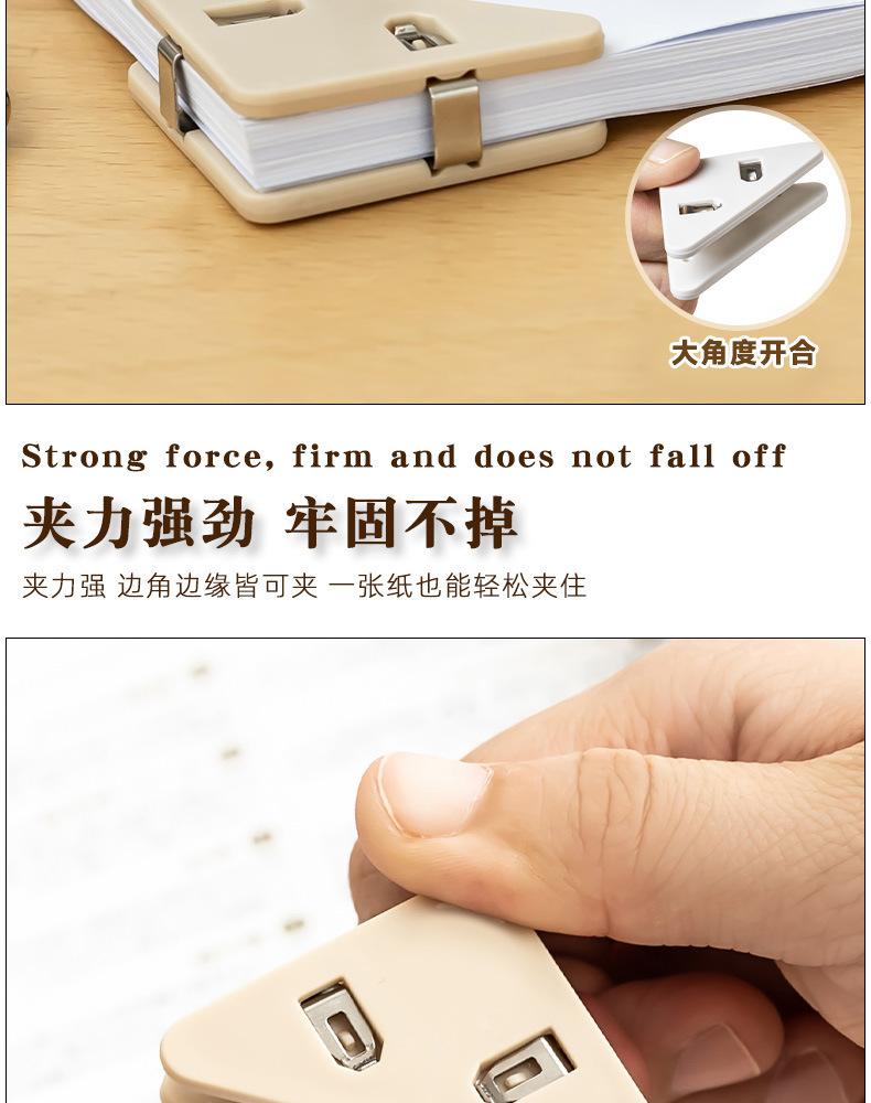 Clip triangular de plástico de color para papel de prueba de estudiante, almacenamiento de libros, artefacto antirrugas, encuadernación de archivos, clip para tickets, clip de ángulo de borde