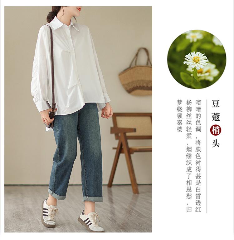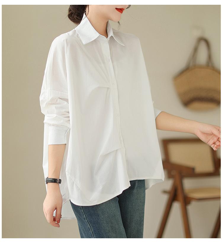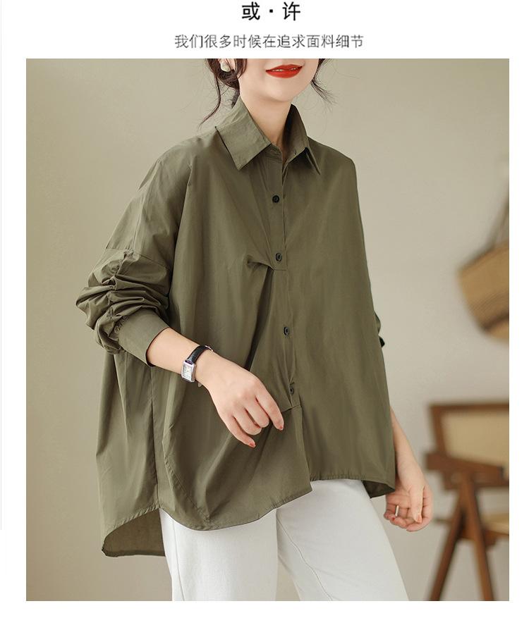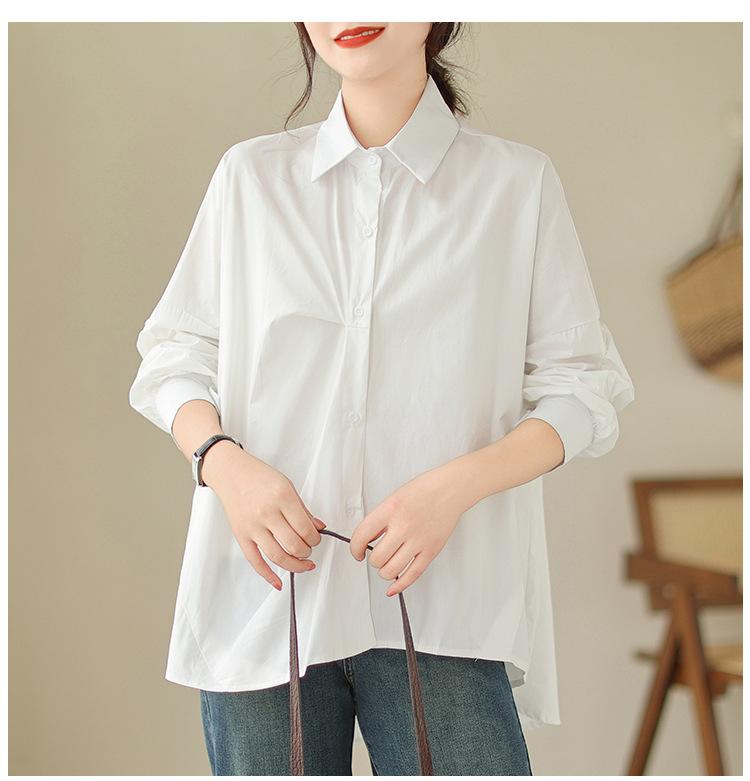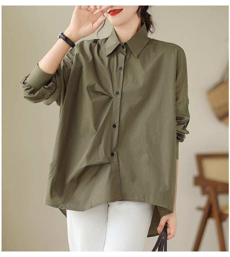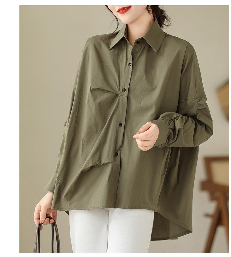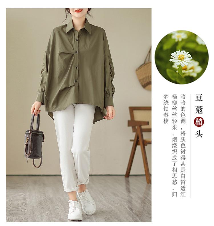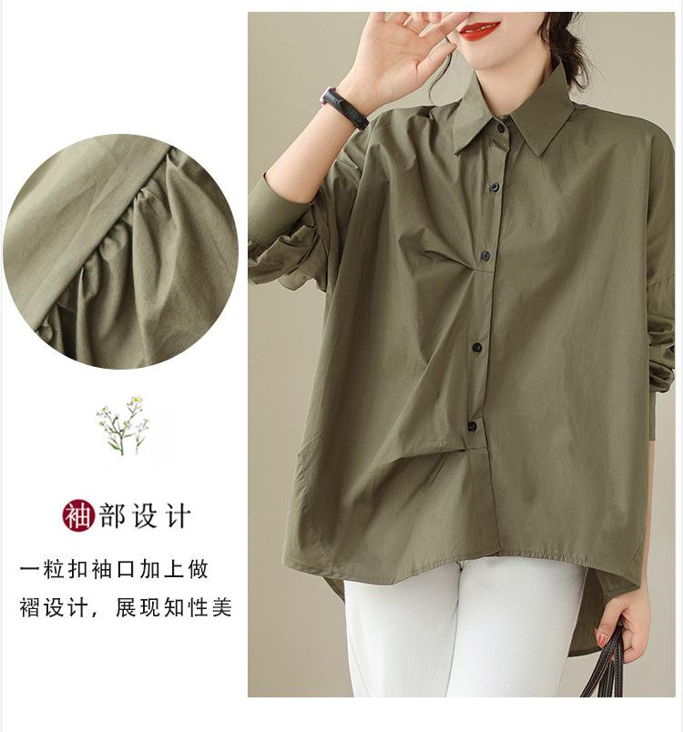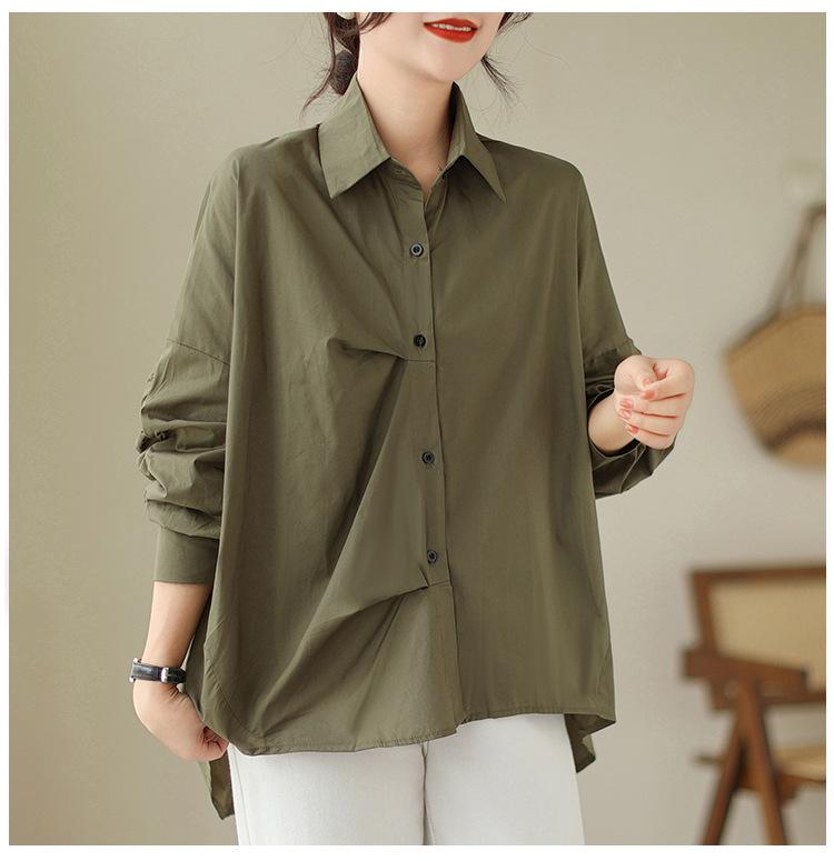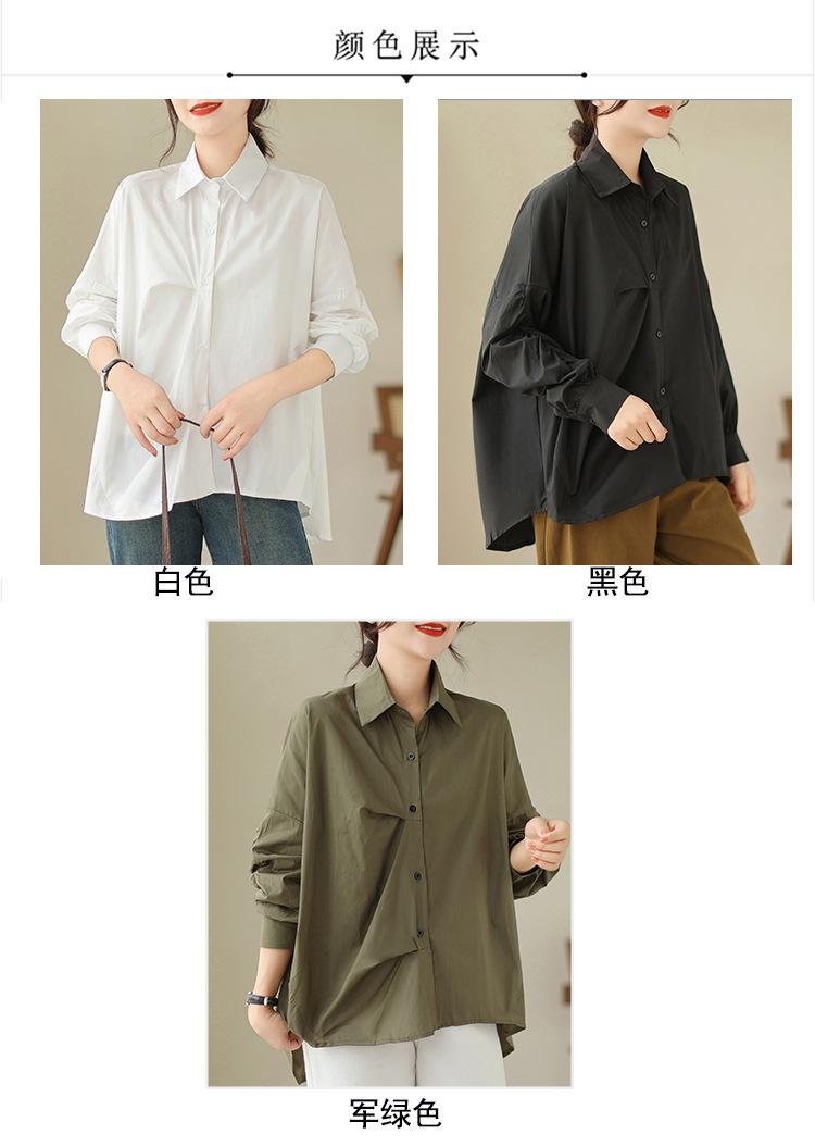 Comercio Exterior 2025 Nuevo Otoño Falda Asimétrica Camisa Holgada Casual Color Puro Manga Larga para Mujer