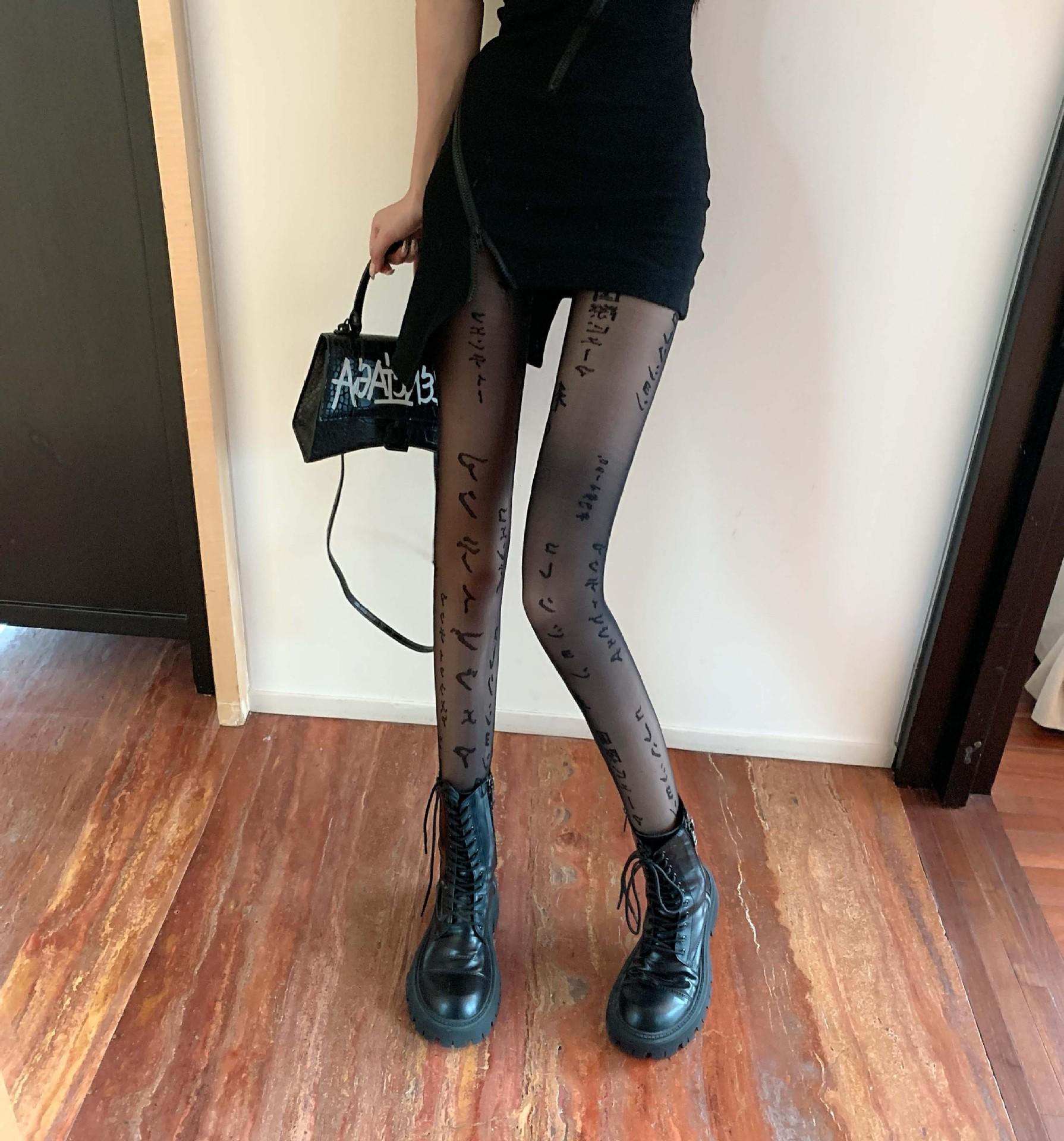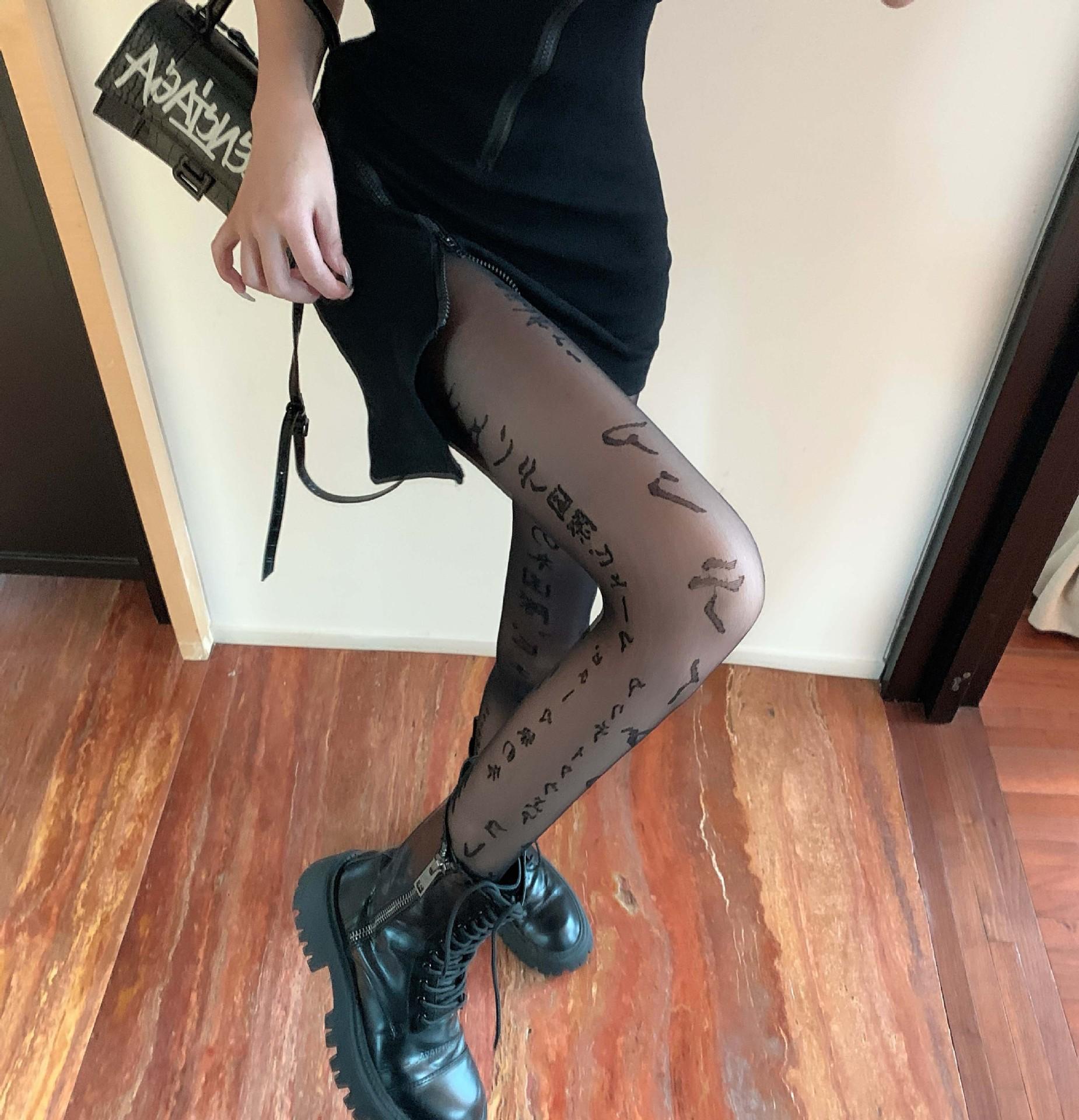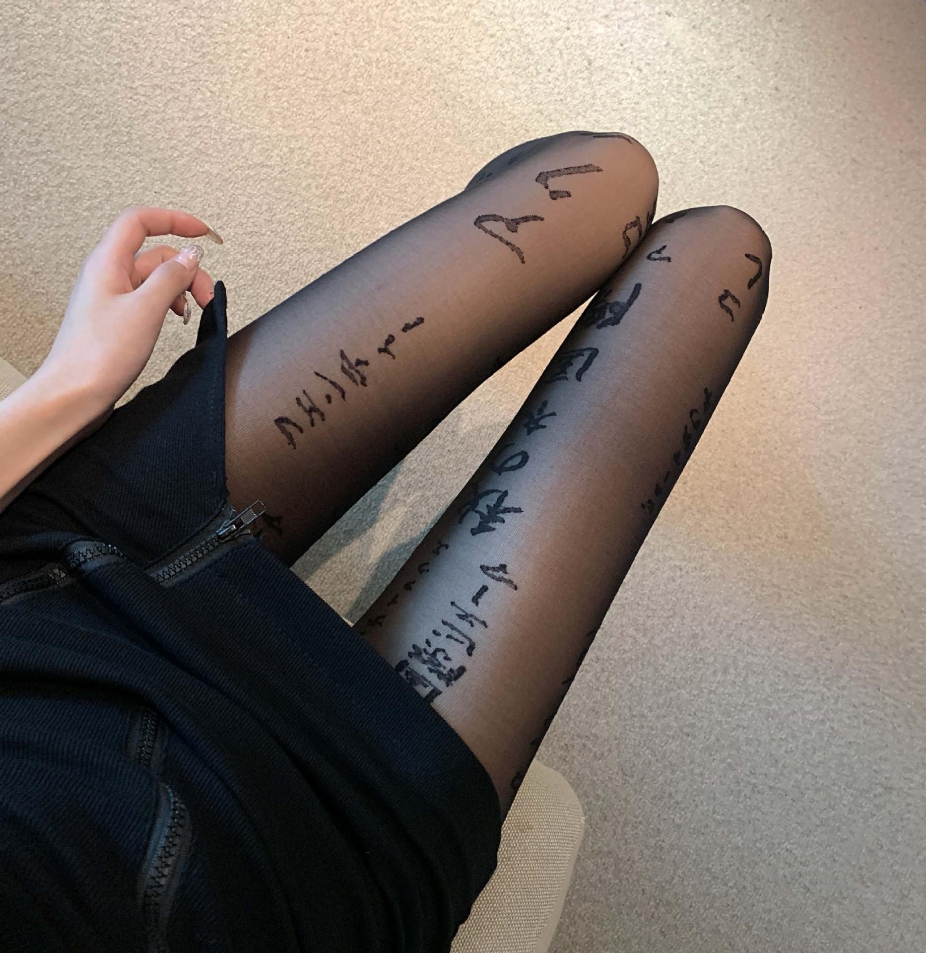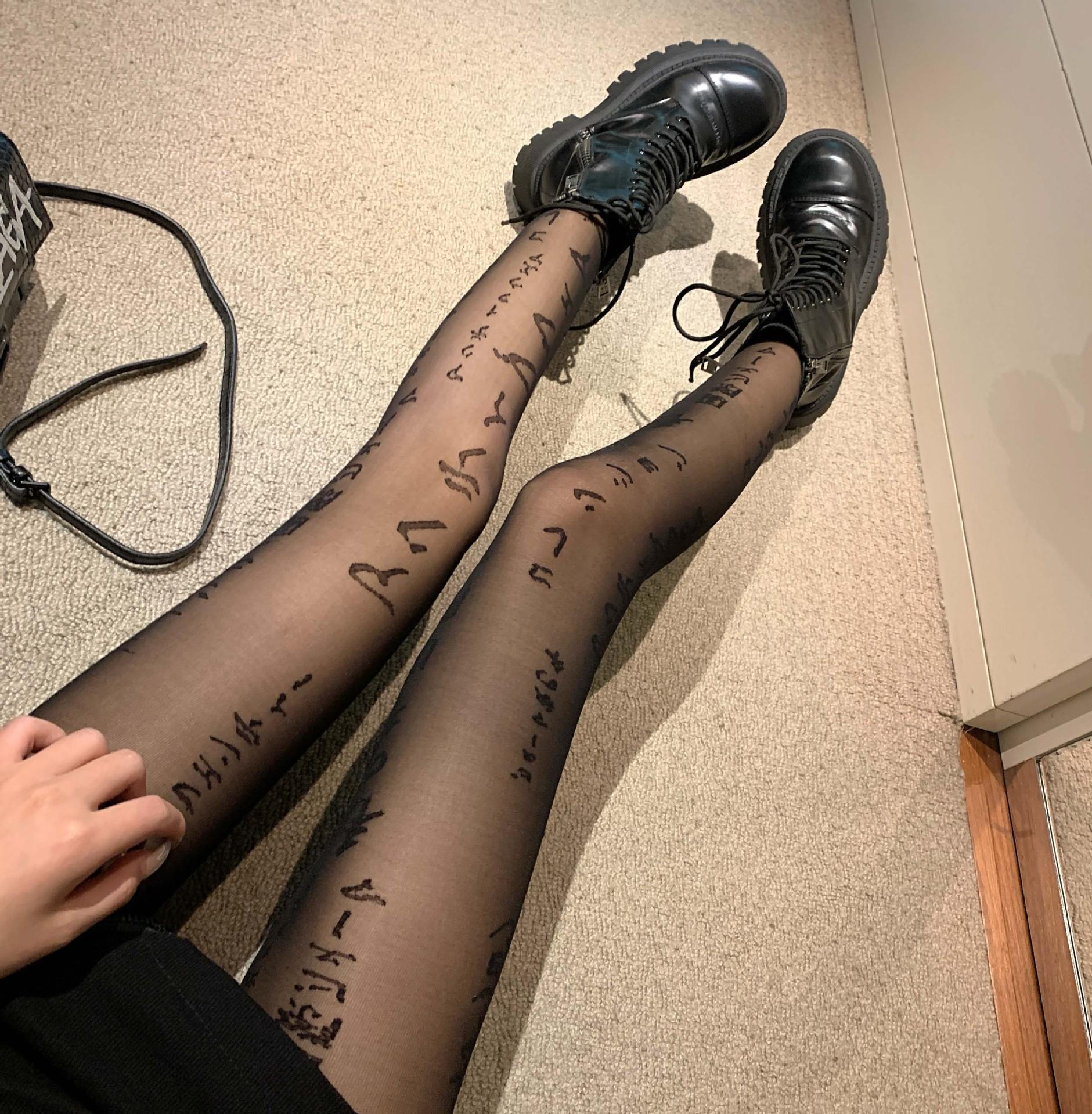 Primavera Verano Otoño Dulce Oscuro Medias de Seda Japonesas Pierna Larga Negro Sexy Letras Medias de Seda Negras Popular en Internet Ins Delgadas