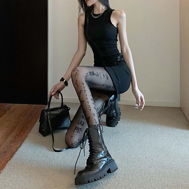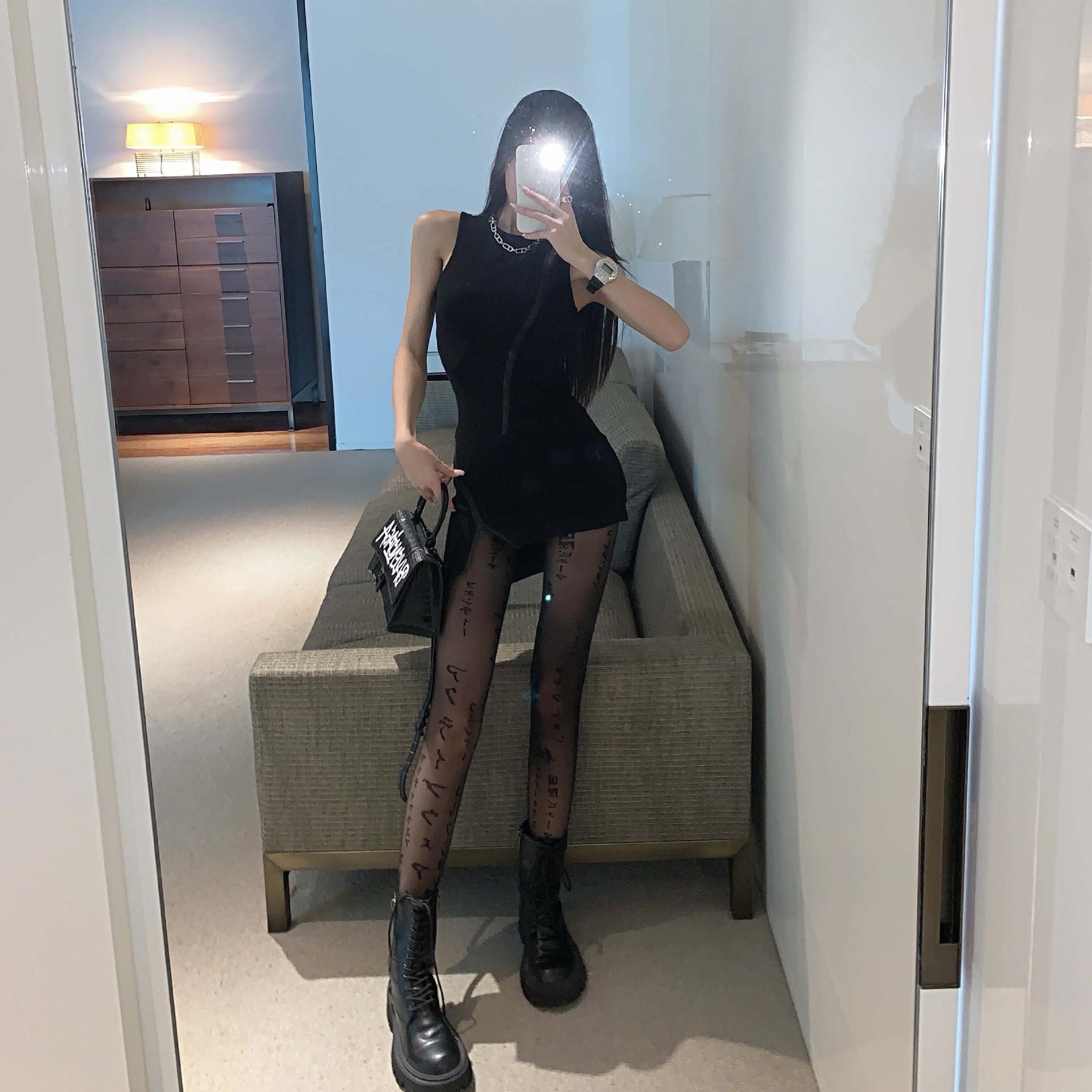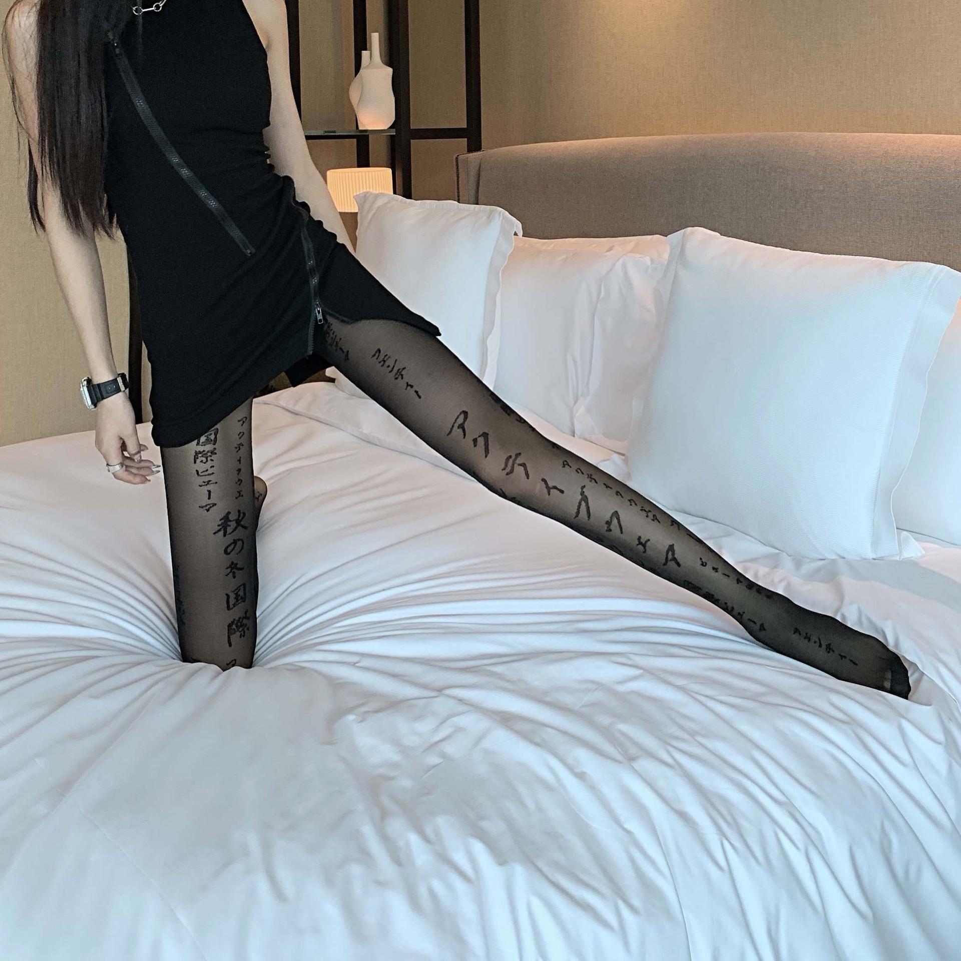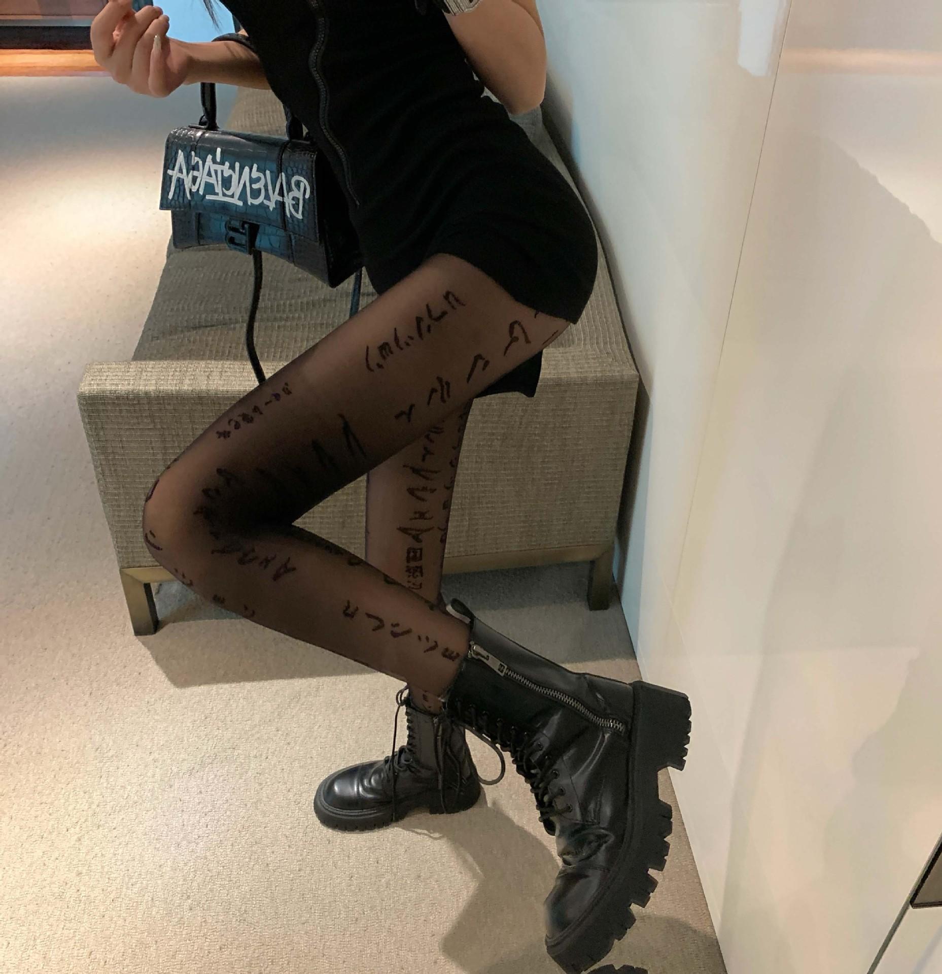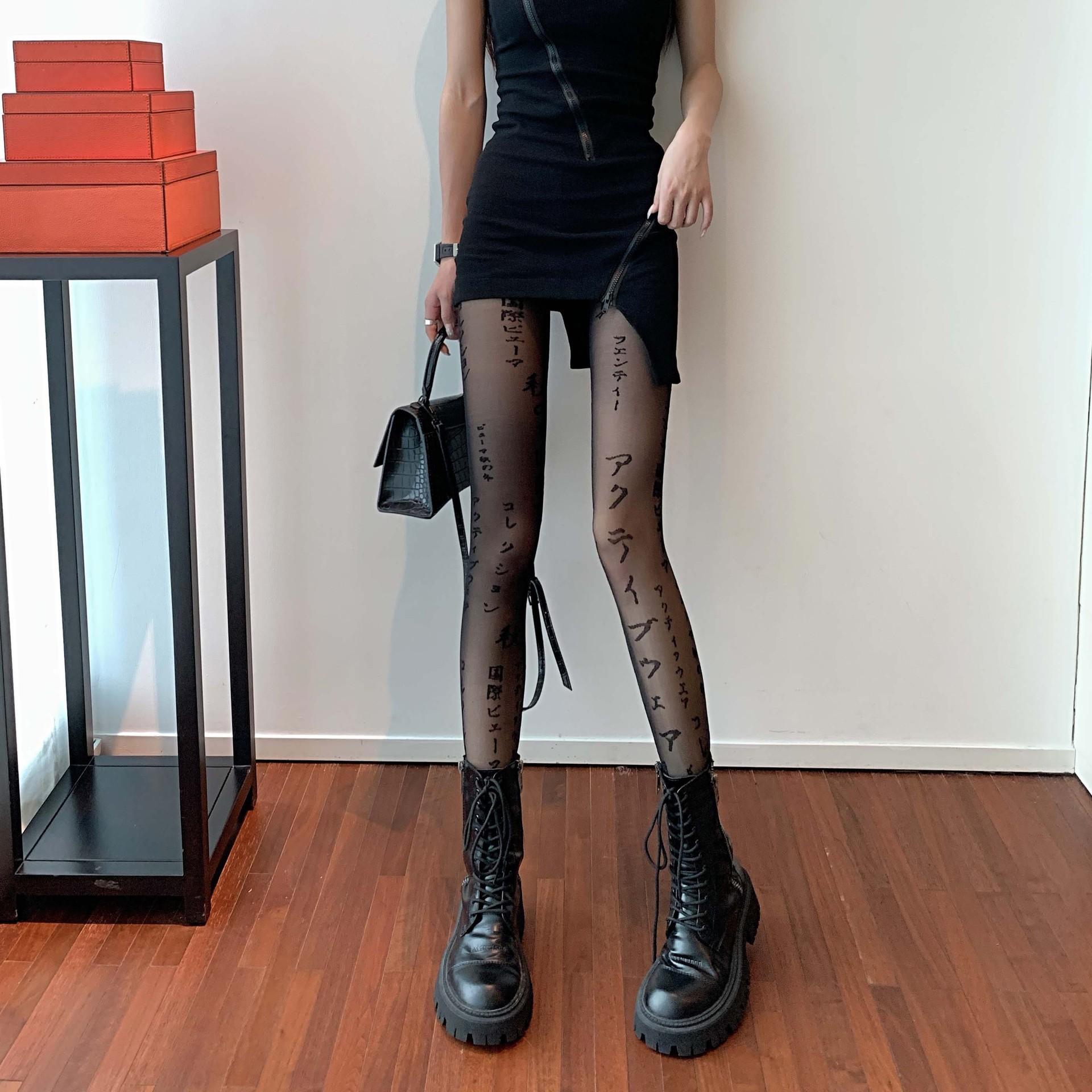 Primavera Verano Otoño Dulce Oscuro Medias de Seda Japonesas Pierna Larga Negro Sexy Letras Medias de Seda Negras Popular en Internet Ins Delgadas