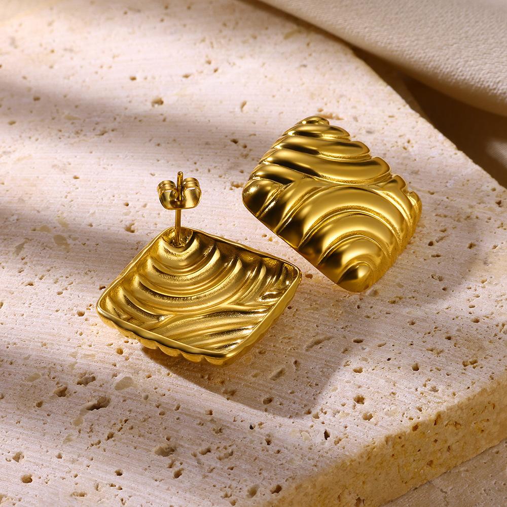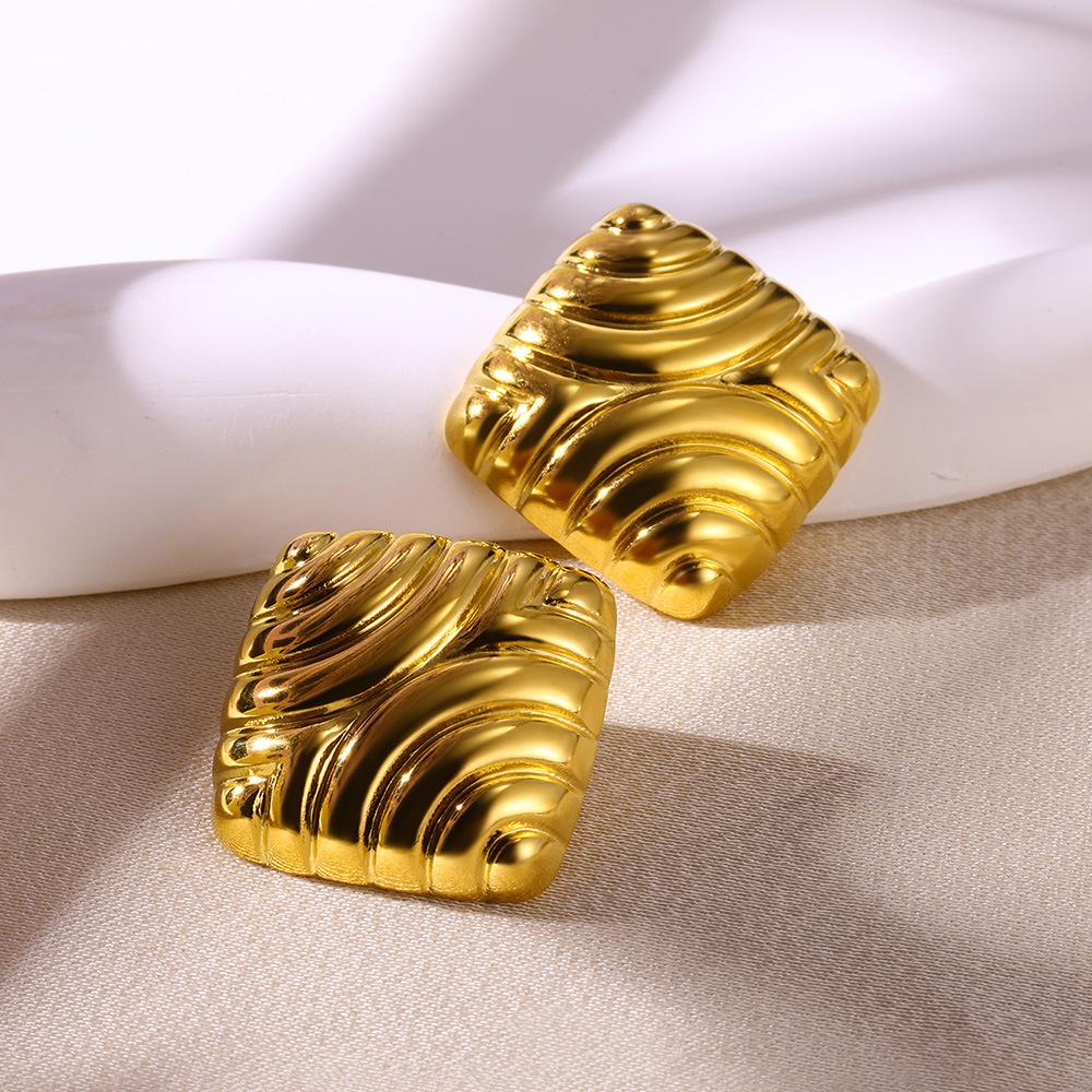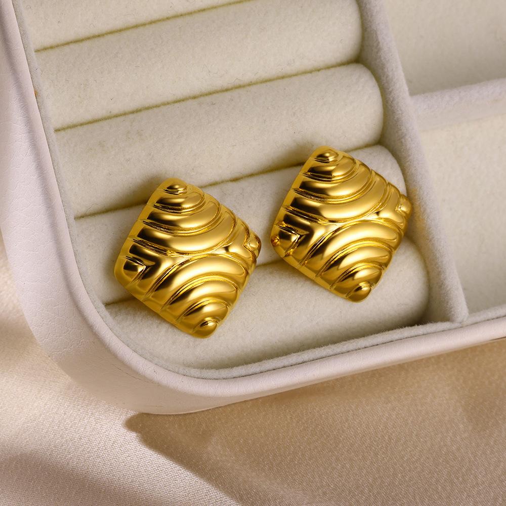 Pendientes geométricos de gran venta transfronteriza para mujer, de acero inoxidable chapado en oro de 18 quilates, diseño simple personalizado, joyería para las orejas al por mayor